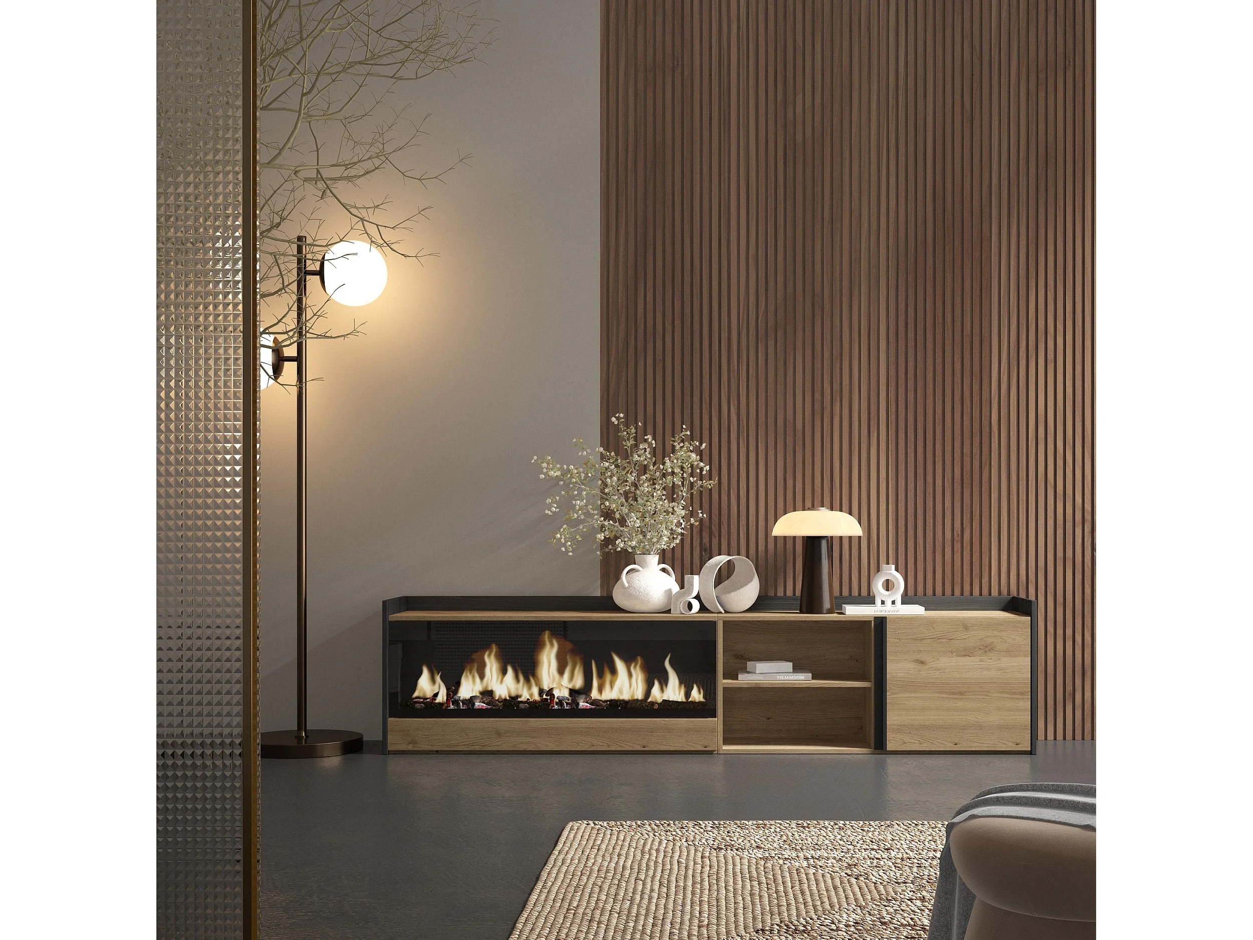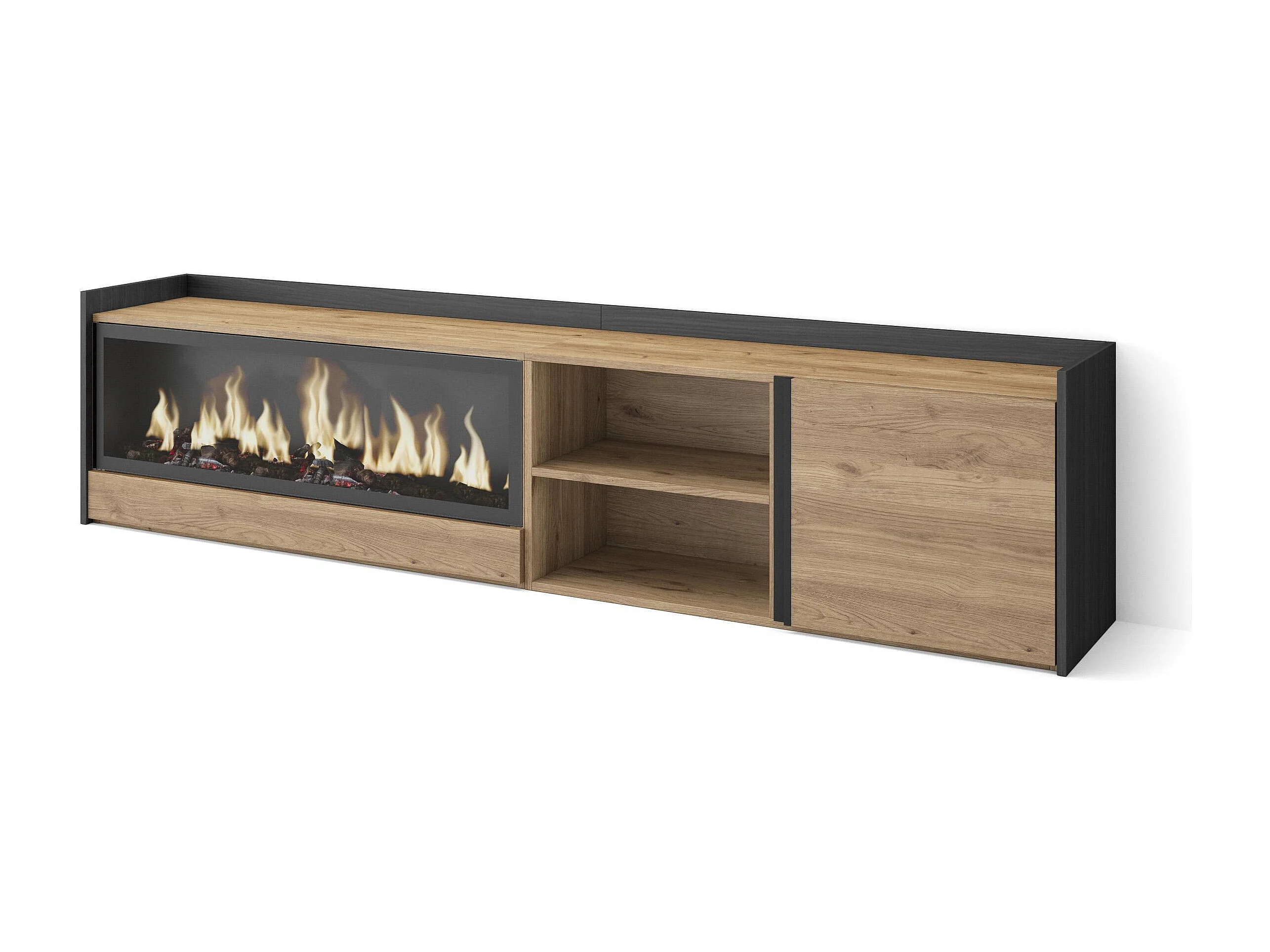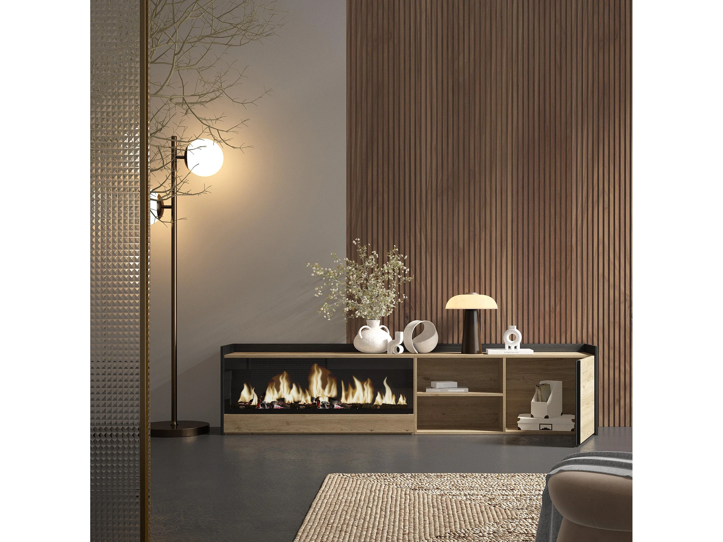 Móvel de TV, 212x50x35 cm, Para televisores até 80", Lareira eléctrica XXL, Carvalho e preto