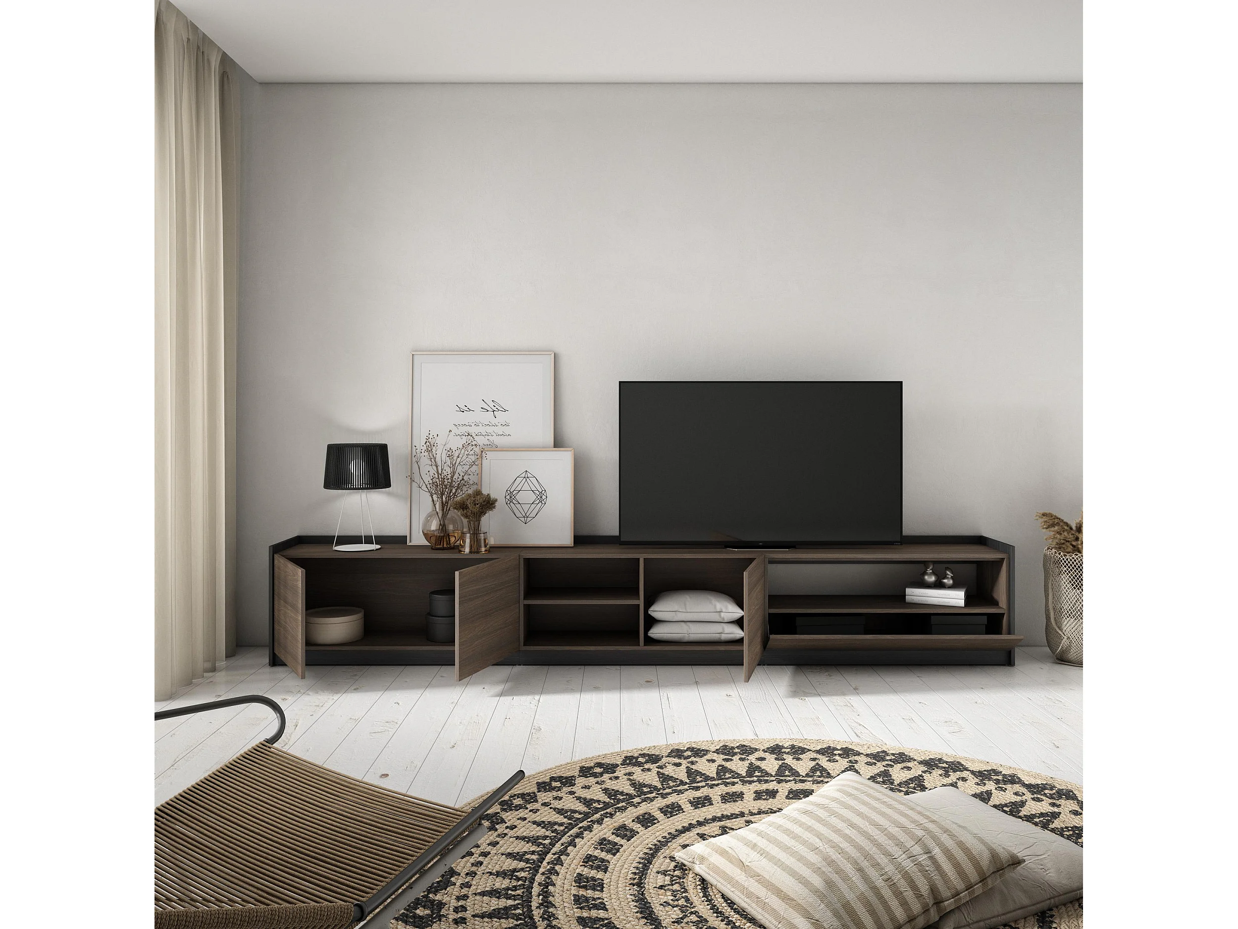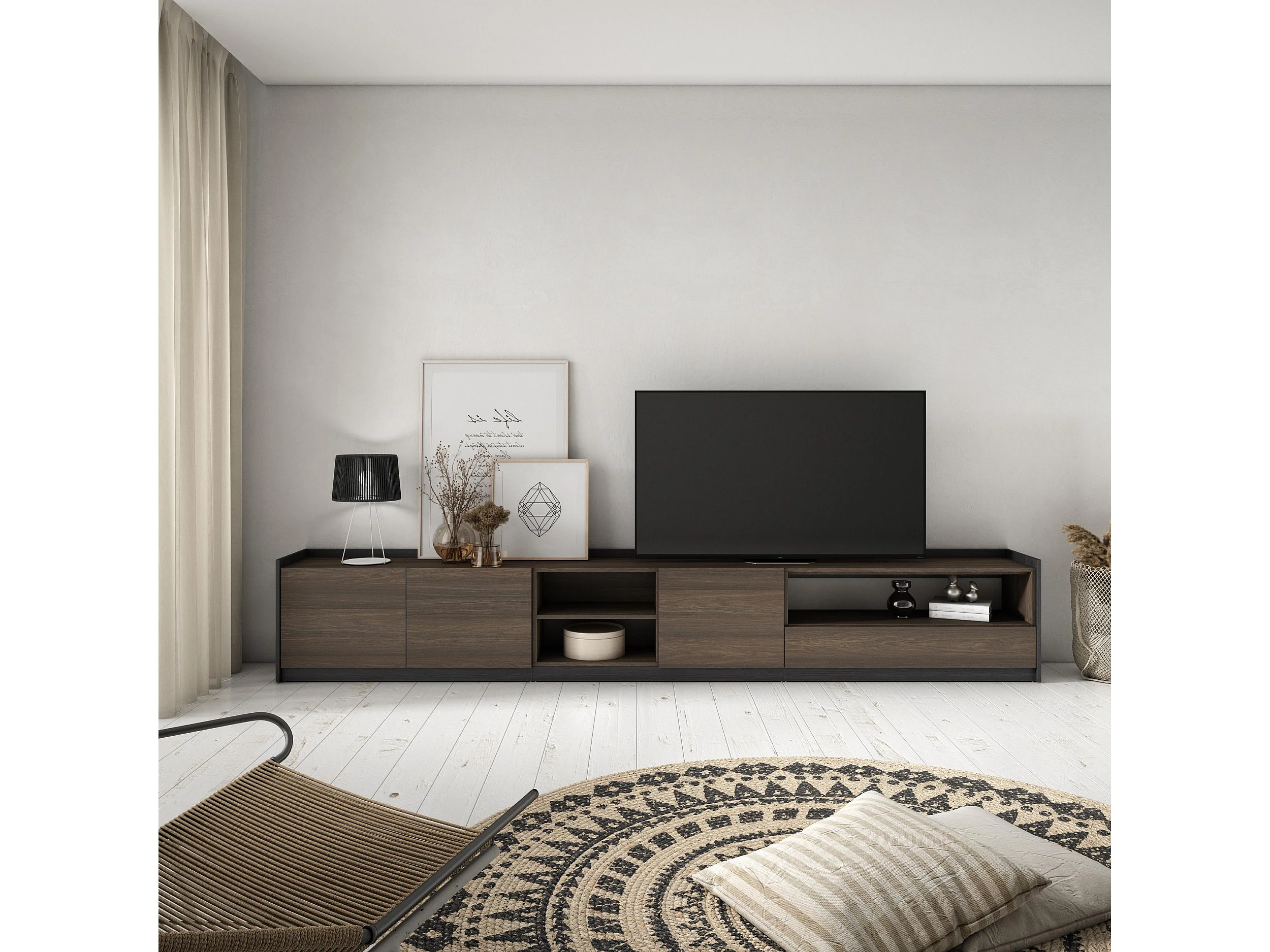 Móvel de TV, 310x50x37 cm, Para televisores até 80", Estante para TV, Carvalho escuro e Preto
