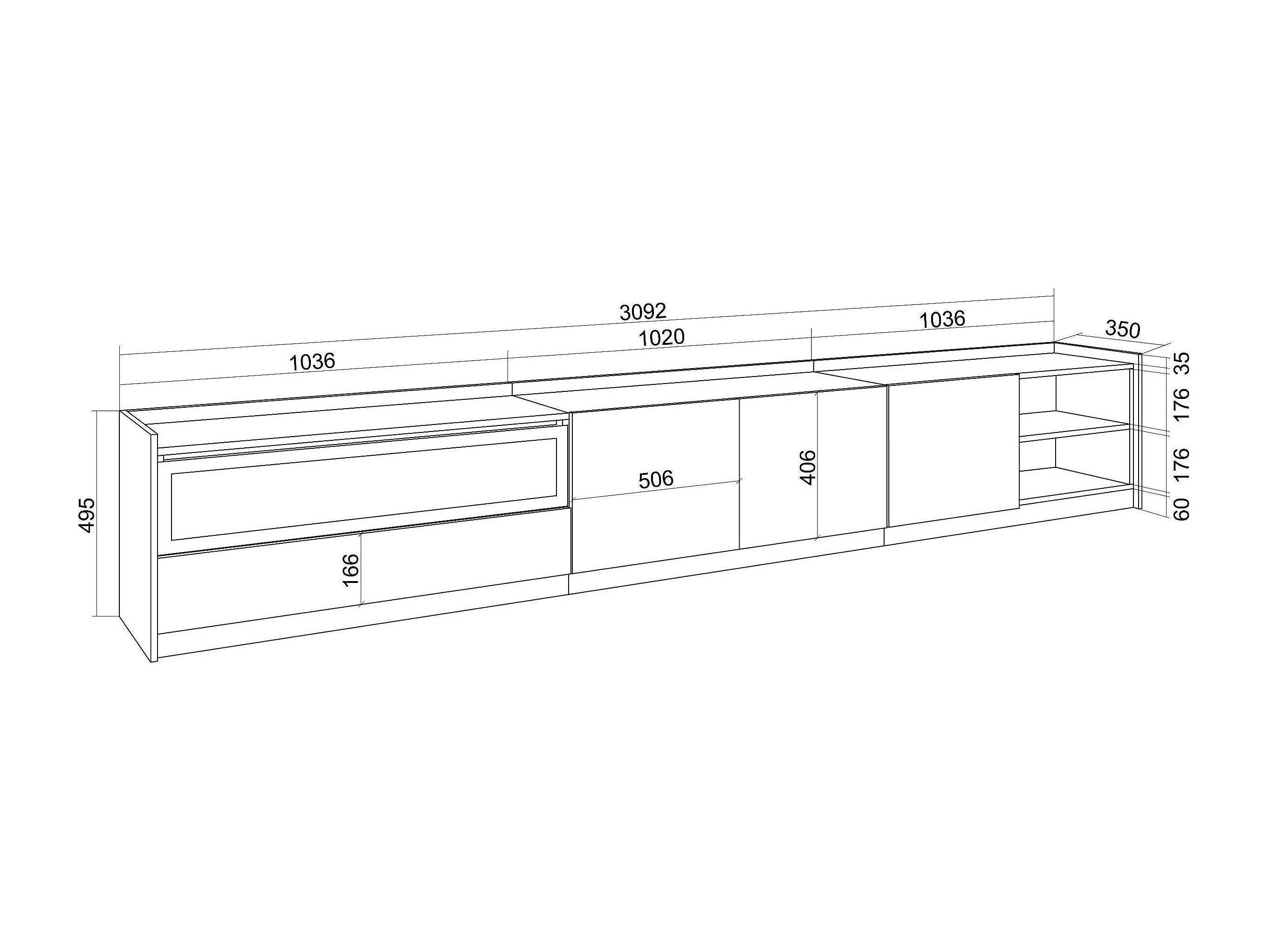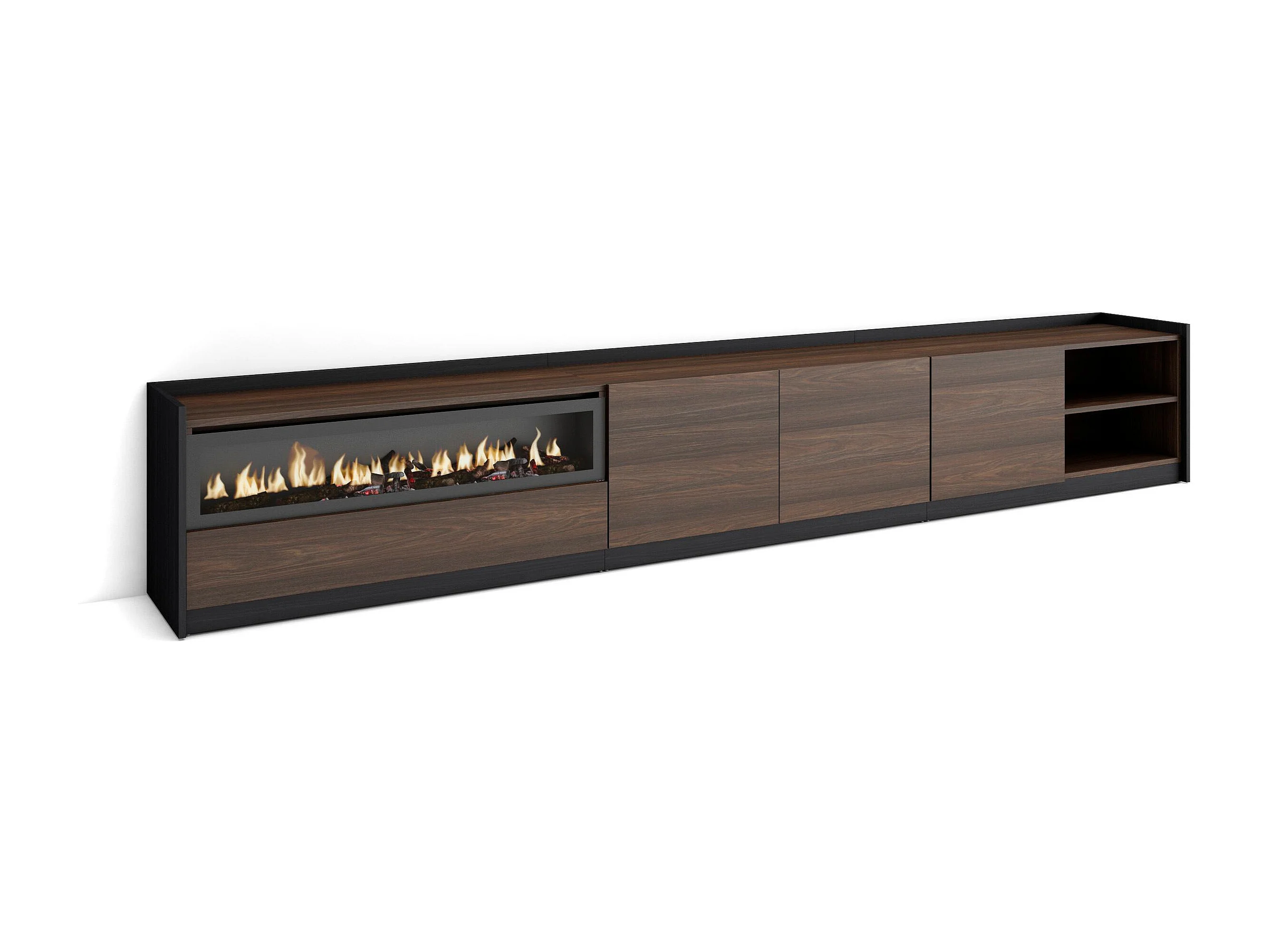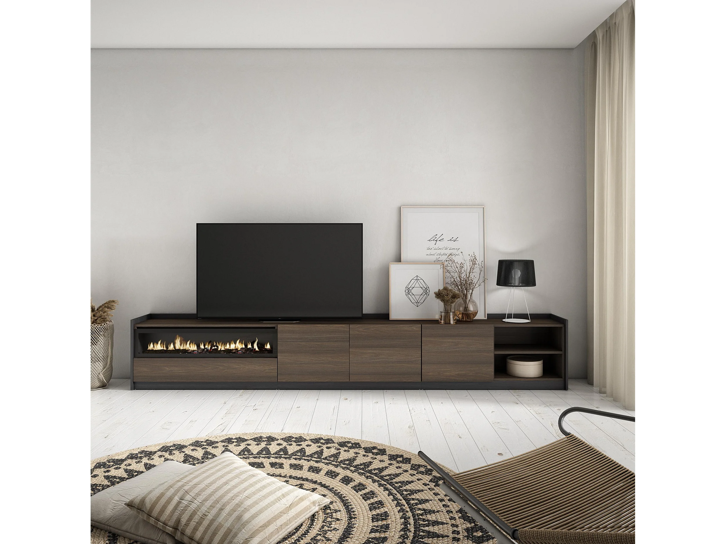 Móvel de TV, 310x50x37 cm, Para televisores até 80", Lareira eléctrica, Carvalho escuro e Preto