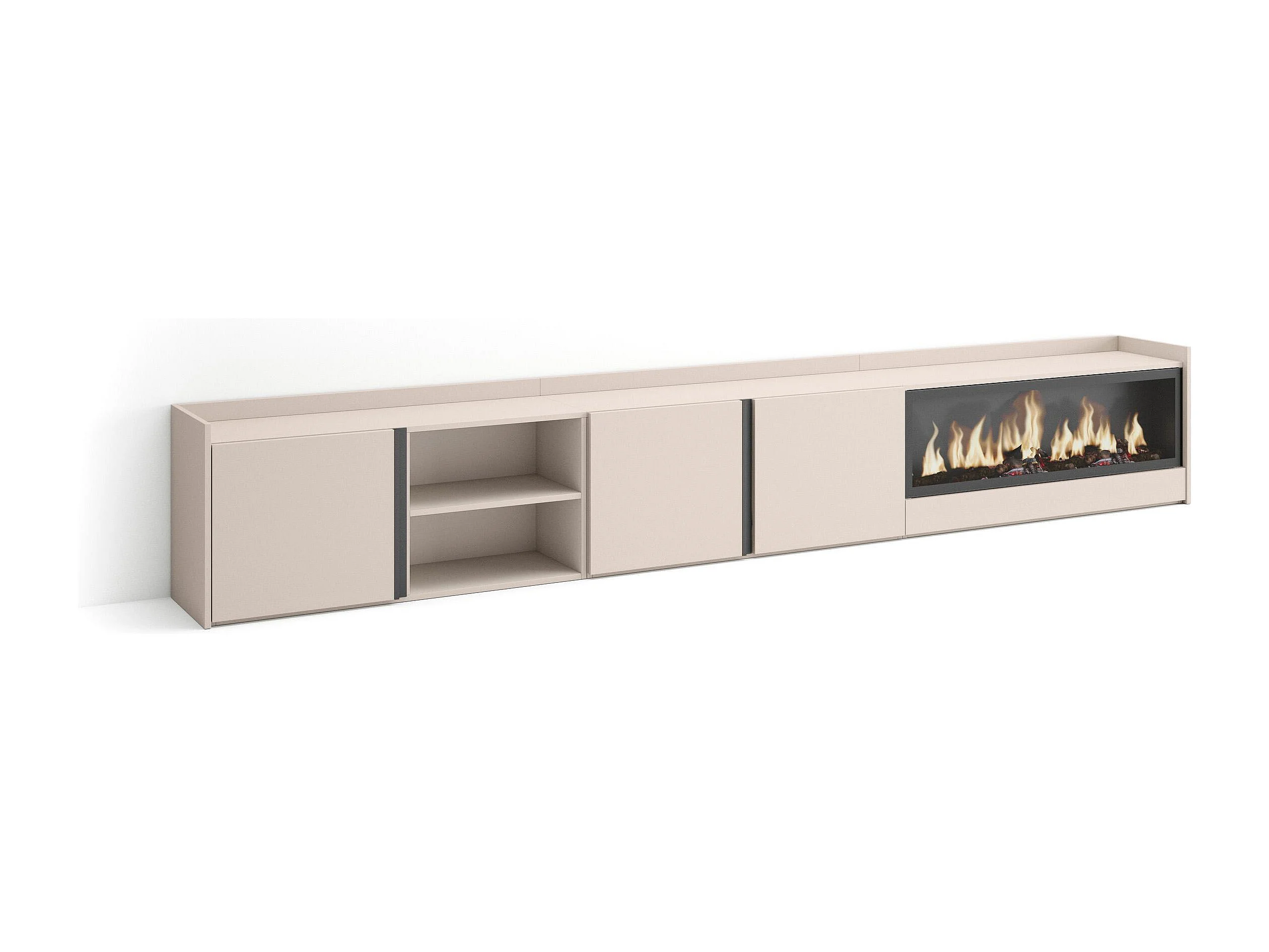 Móvel de TV, 315x50x35 cm, Para televisores até 80", Lareira eléctrica XXL, Bege