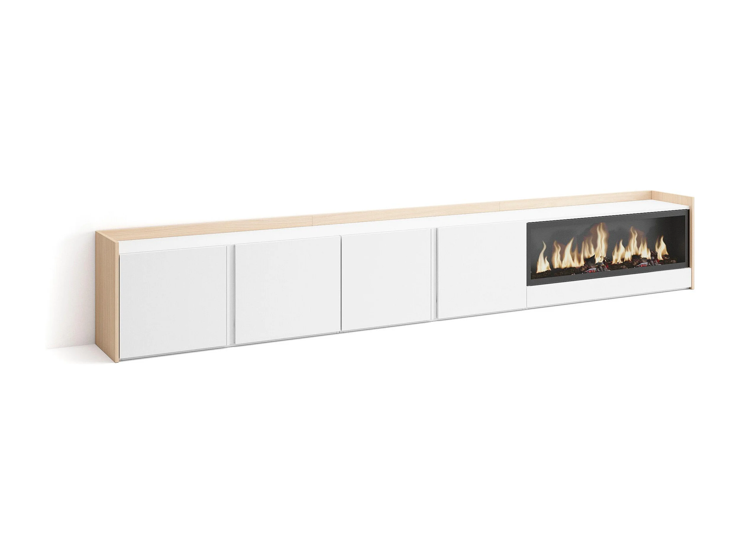 Móvel de TV, 315x50x35 cm, Para televisores até 80", Lareira eléctrica XXL, Branco e Carvalho soft