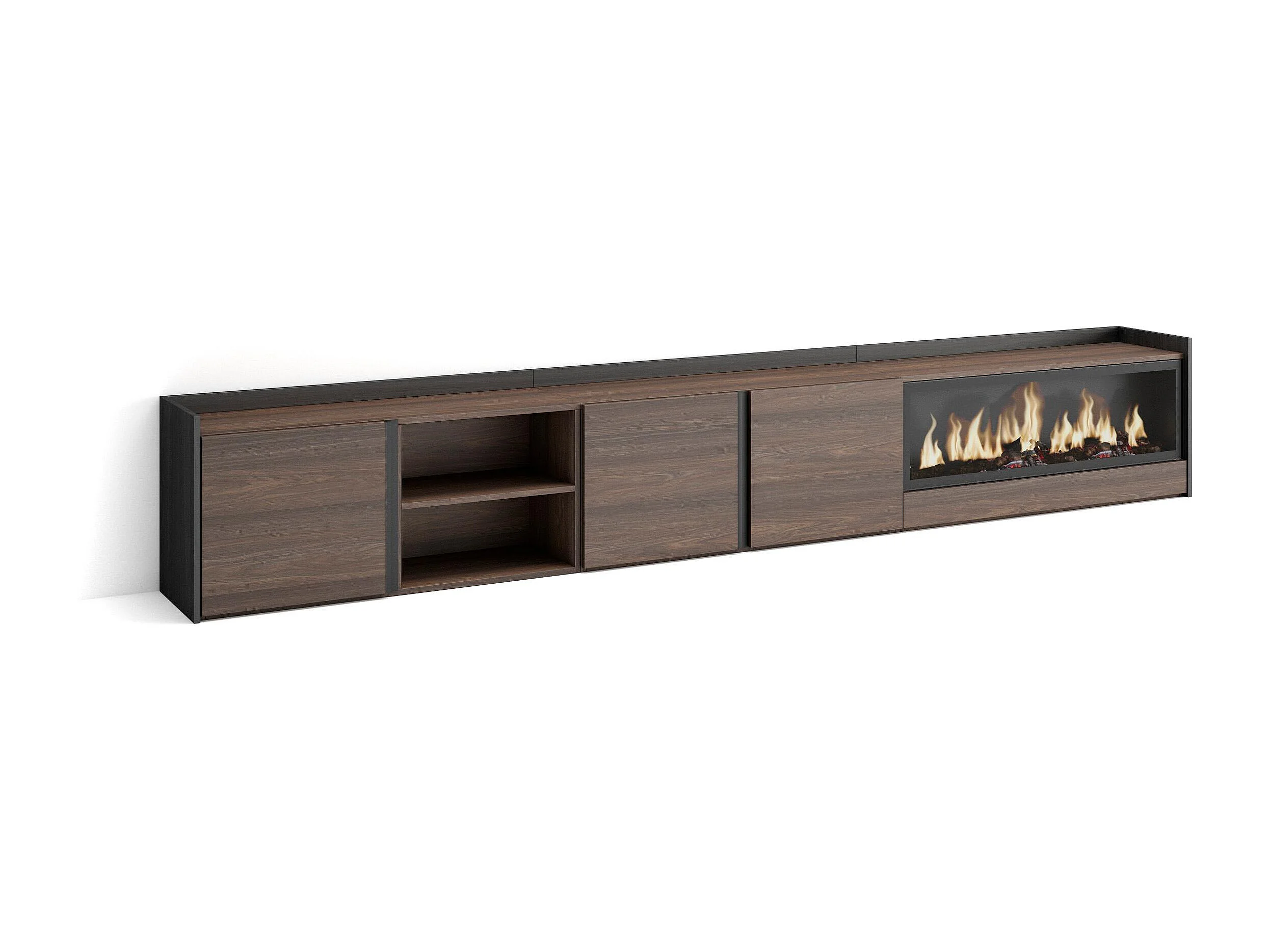 Móvel de TV, 315x50x35 cm, Para televisores até 80", Lareira eléctrica XXL, Carvalho escuro e Preto