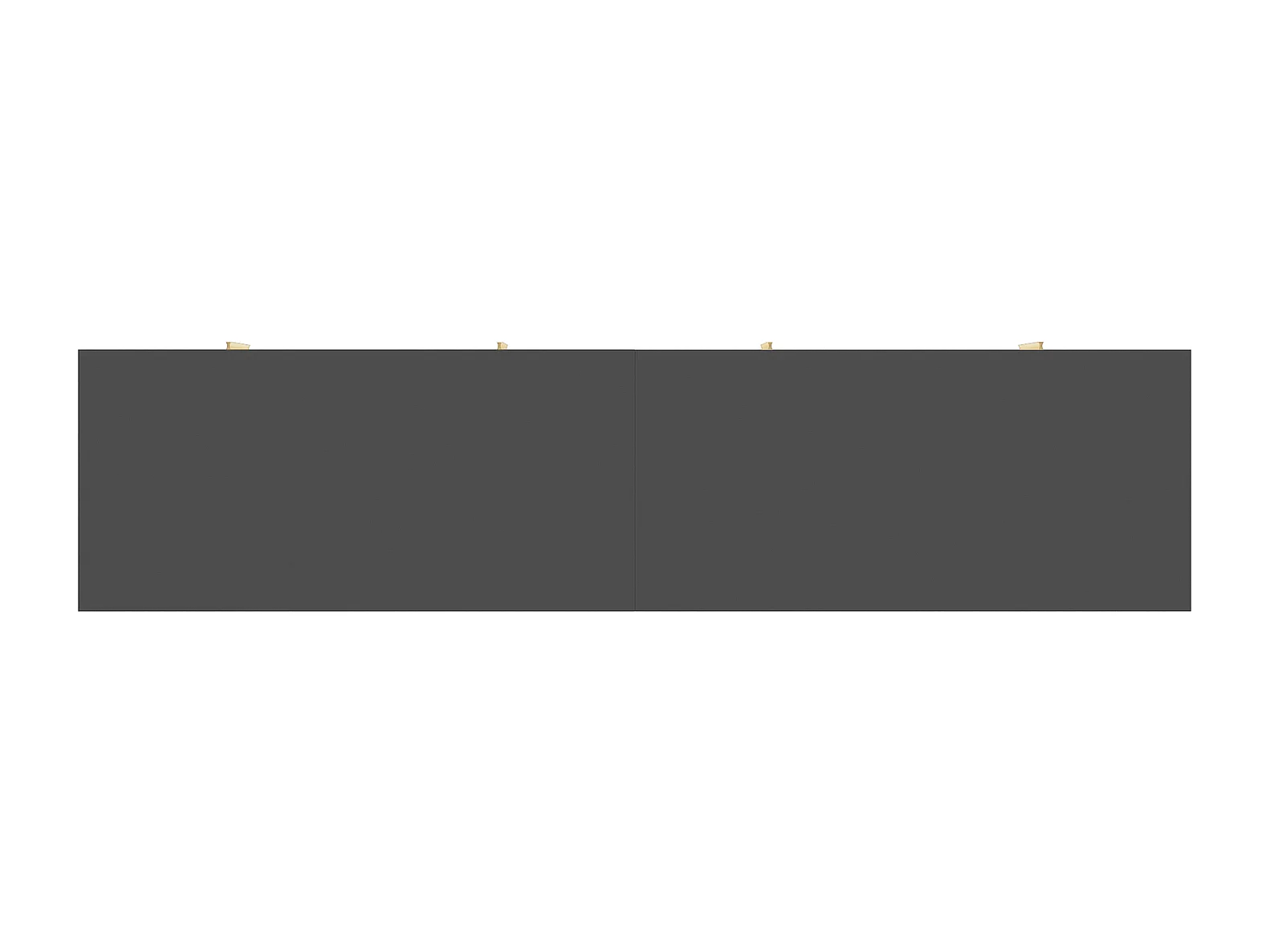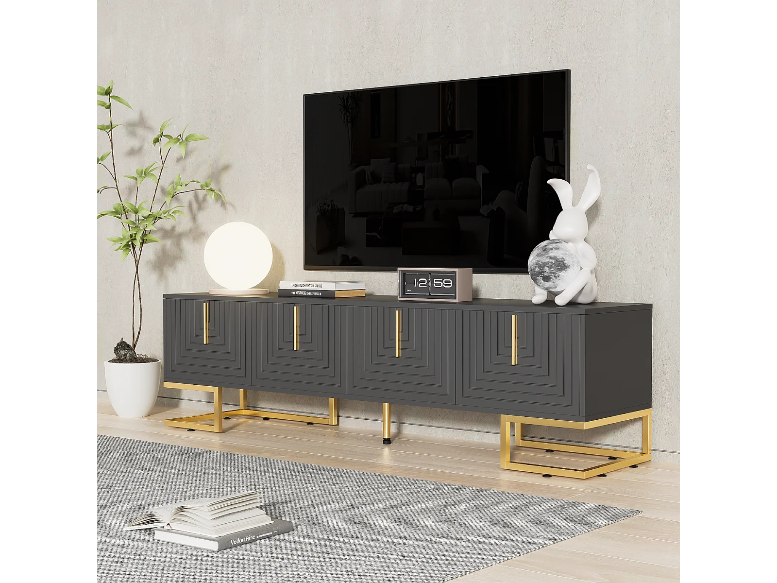 Móvel de TV baixo com porta estruturada, puxadores e pés dourados, cinza escuro + dourado