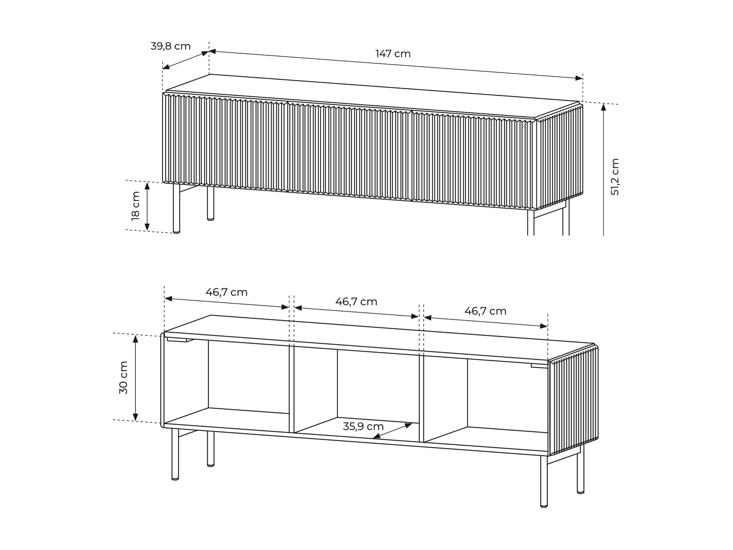 Móvel de TV, caxemira, 147 x 51,2 x 39,8 cm