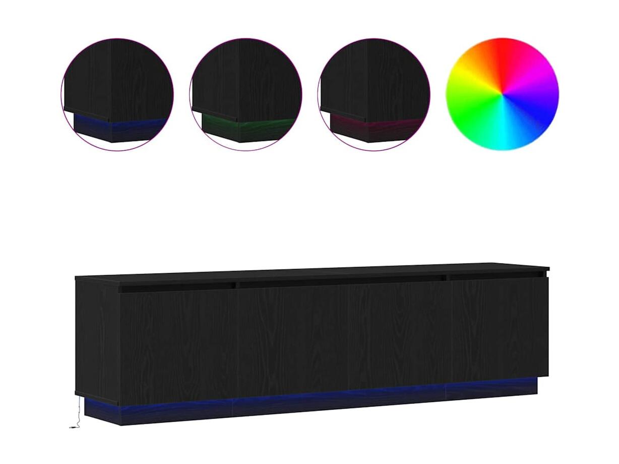 Móvel de TV com LED Carvalho preto 180 x 38 x 49 cm