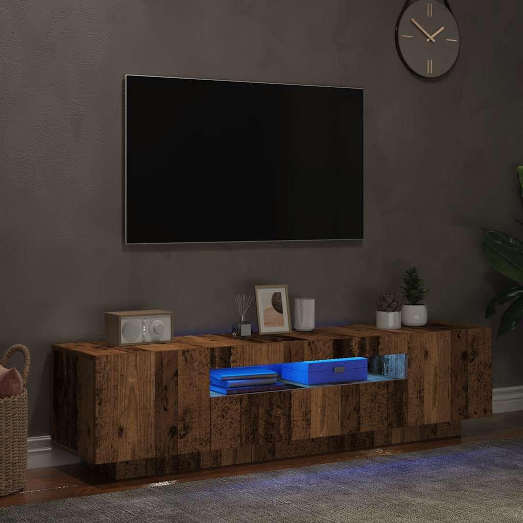 Móveis de TV com luzes LED 2peças derivados madeira madeira velha