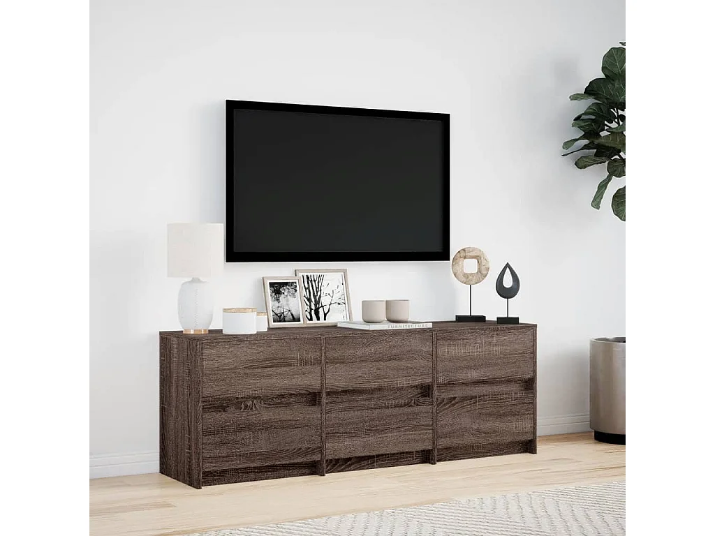 Móvel de TV com luzes LED derivados madeira carvalho castanho