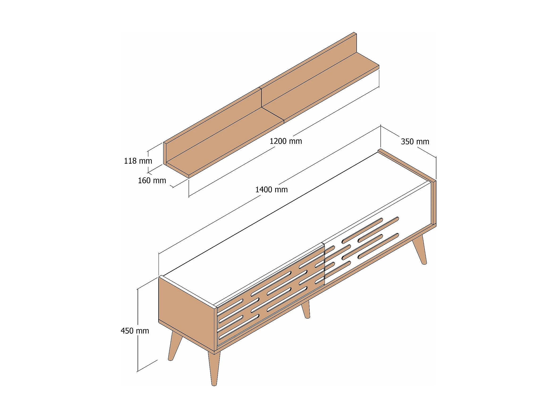 Móvel de TV moderno – 140 cm de largura – Branco – Melamina