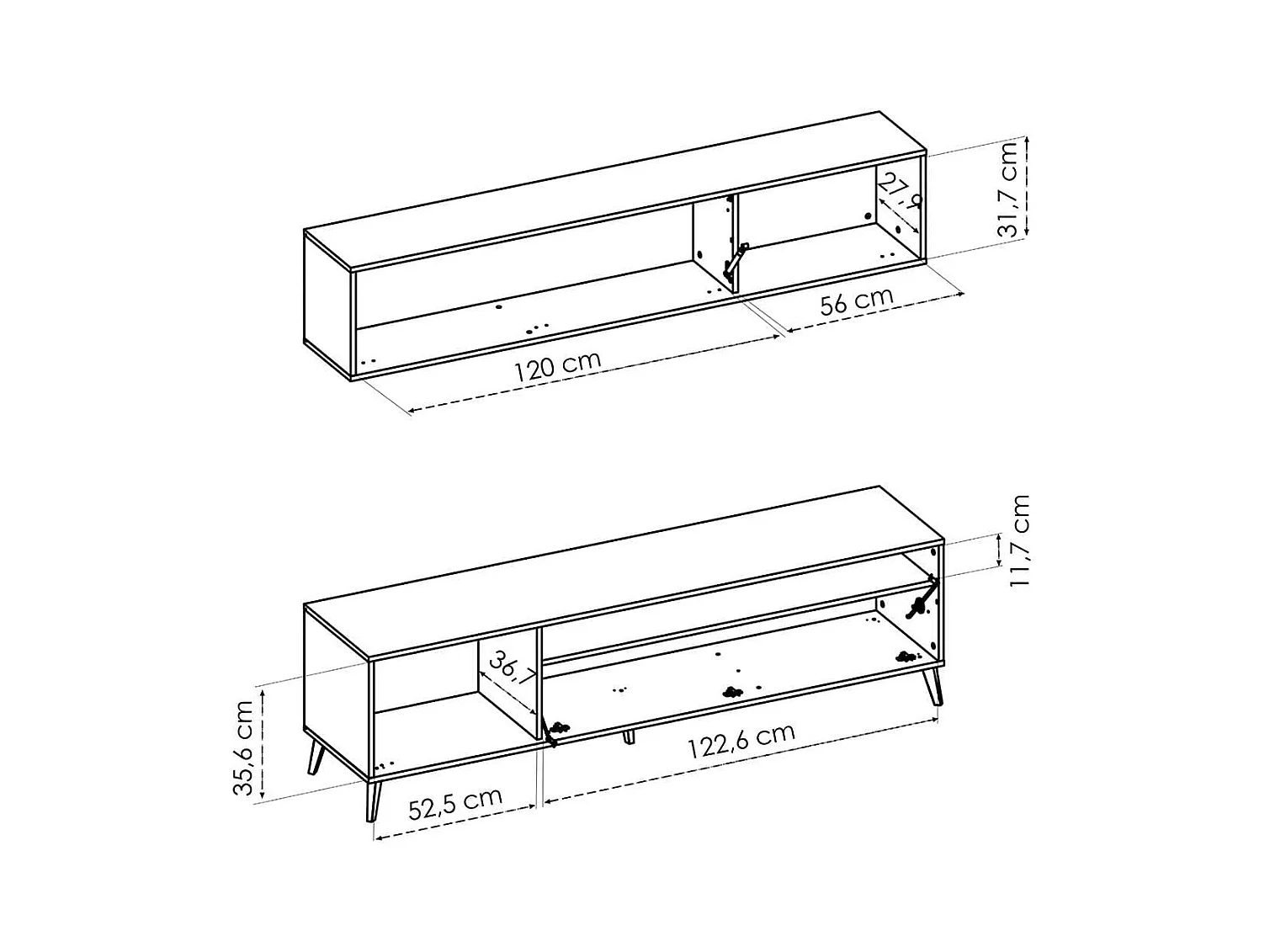Sistema de parede Dkaczmarsk, Composição da sala, Móveis multiusos para sala, Móvel TV, 160x30 h167 cm, Branco e Nogueira