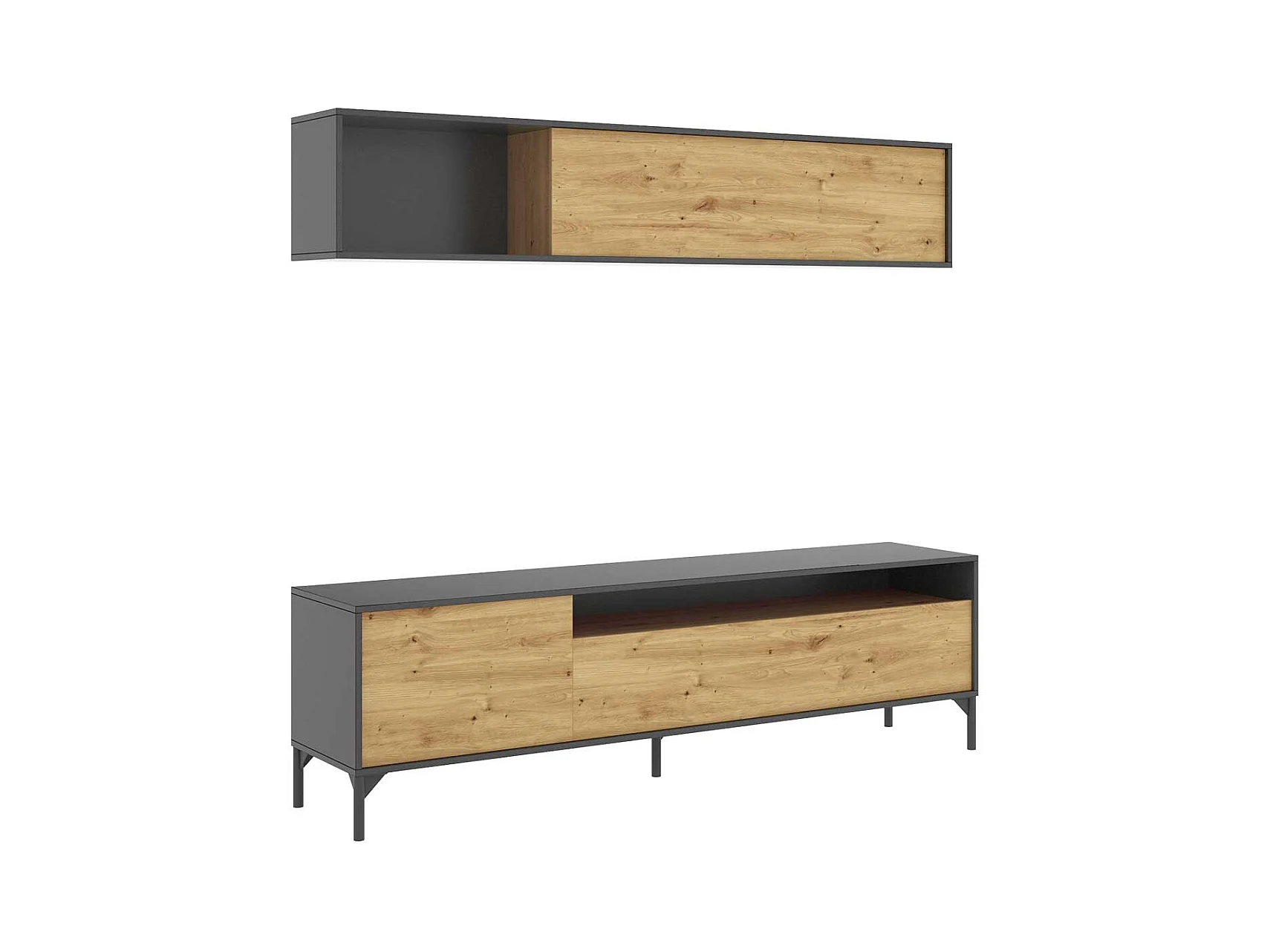 Móvel de TV Compacto Bonn Nordic/Grafito com Armazenamento Integrado - Estilo Moderno e Funcional