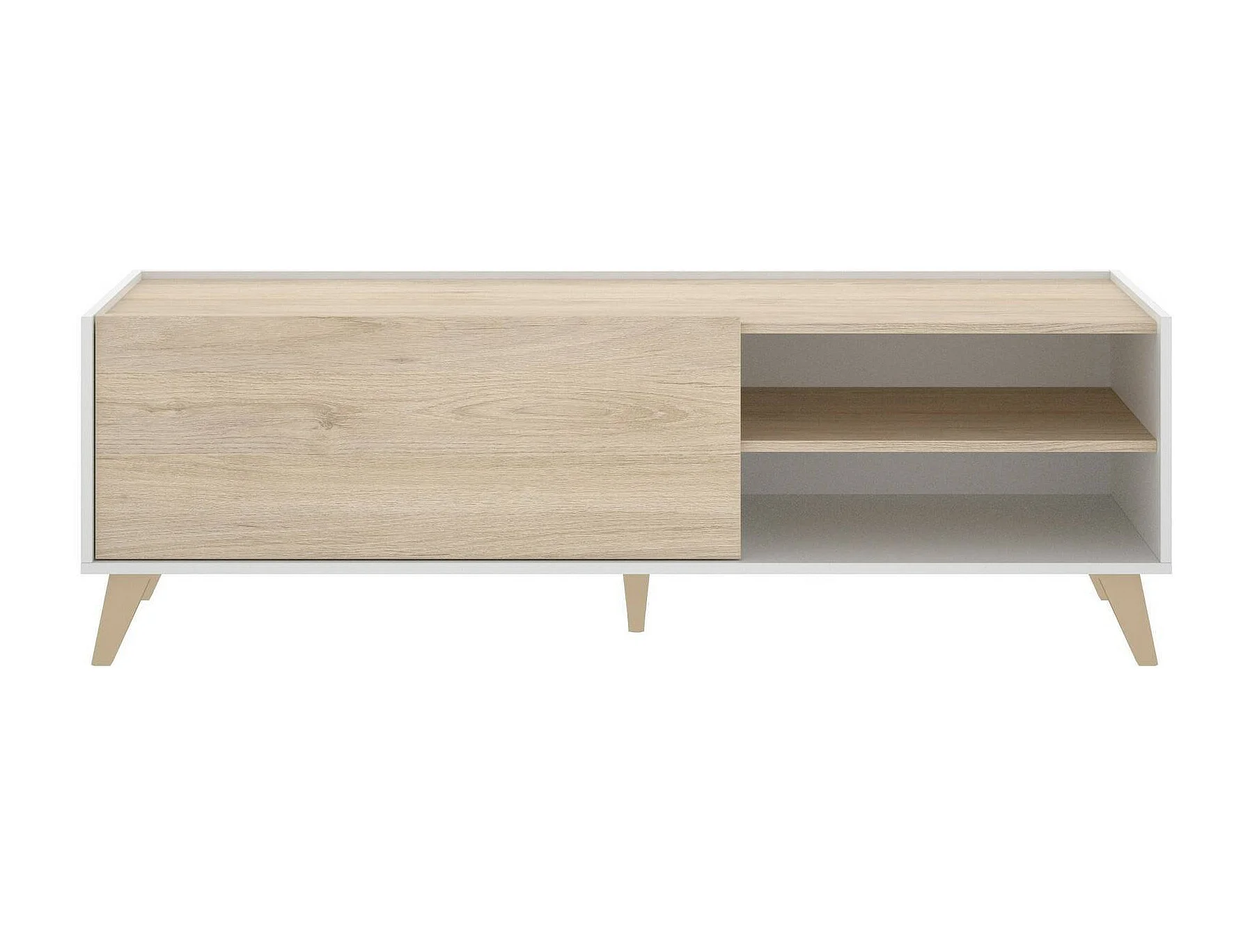 Móvel de TV Dacerbi, Aparador baixo da sala, Aparador da sala para televisão, 155x43h47 cm, Carvalho e Branco