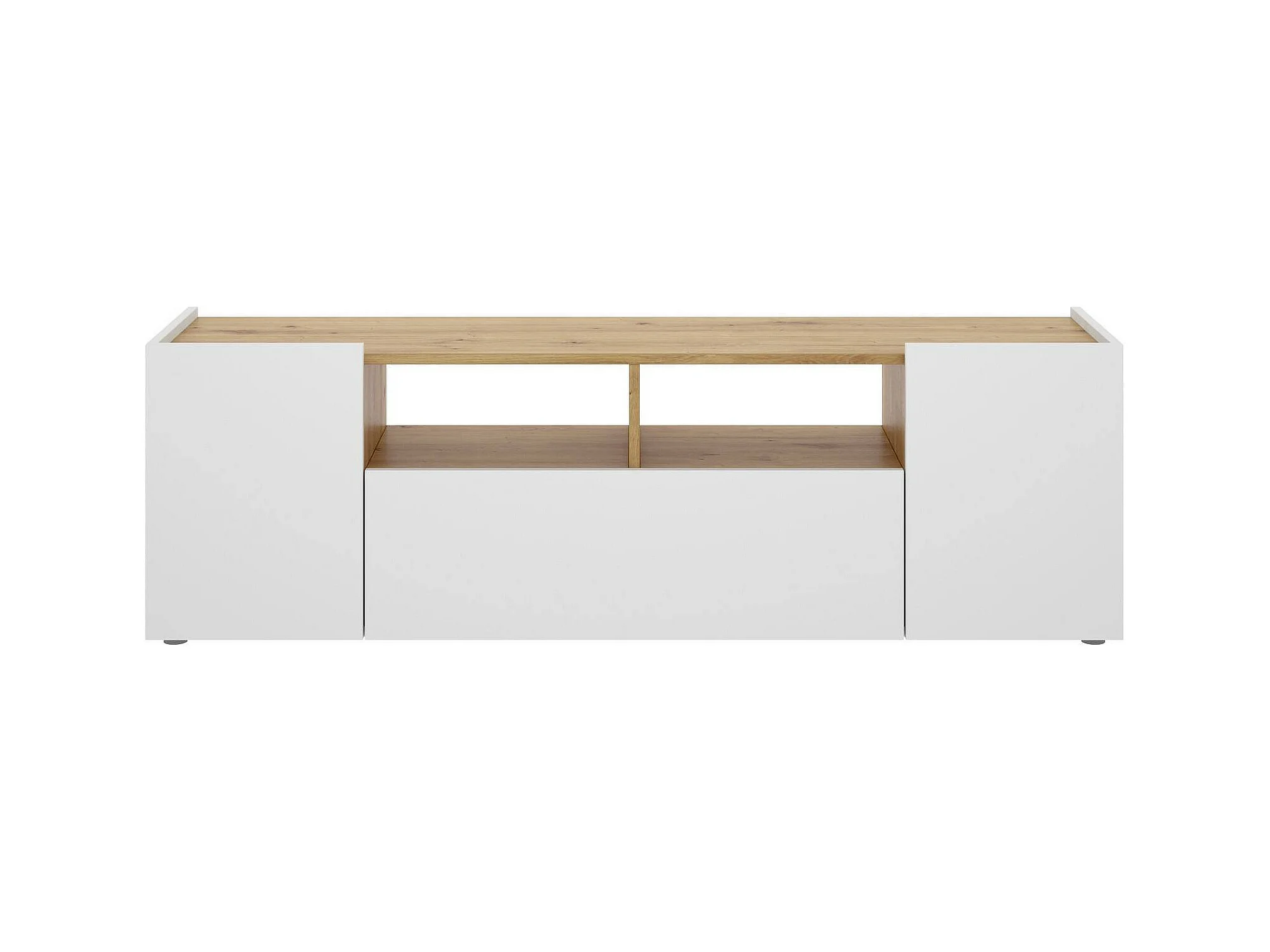 Móvel de TV Dcotal, Aparador baixo da sala, Aparador da sala para televisão, 142x35h44 cm, Branco e Carvalho Nó