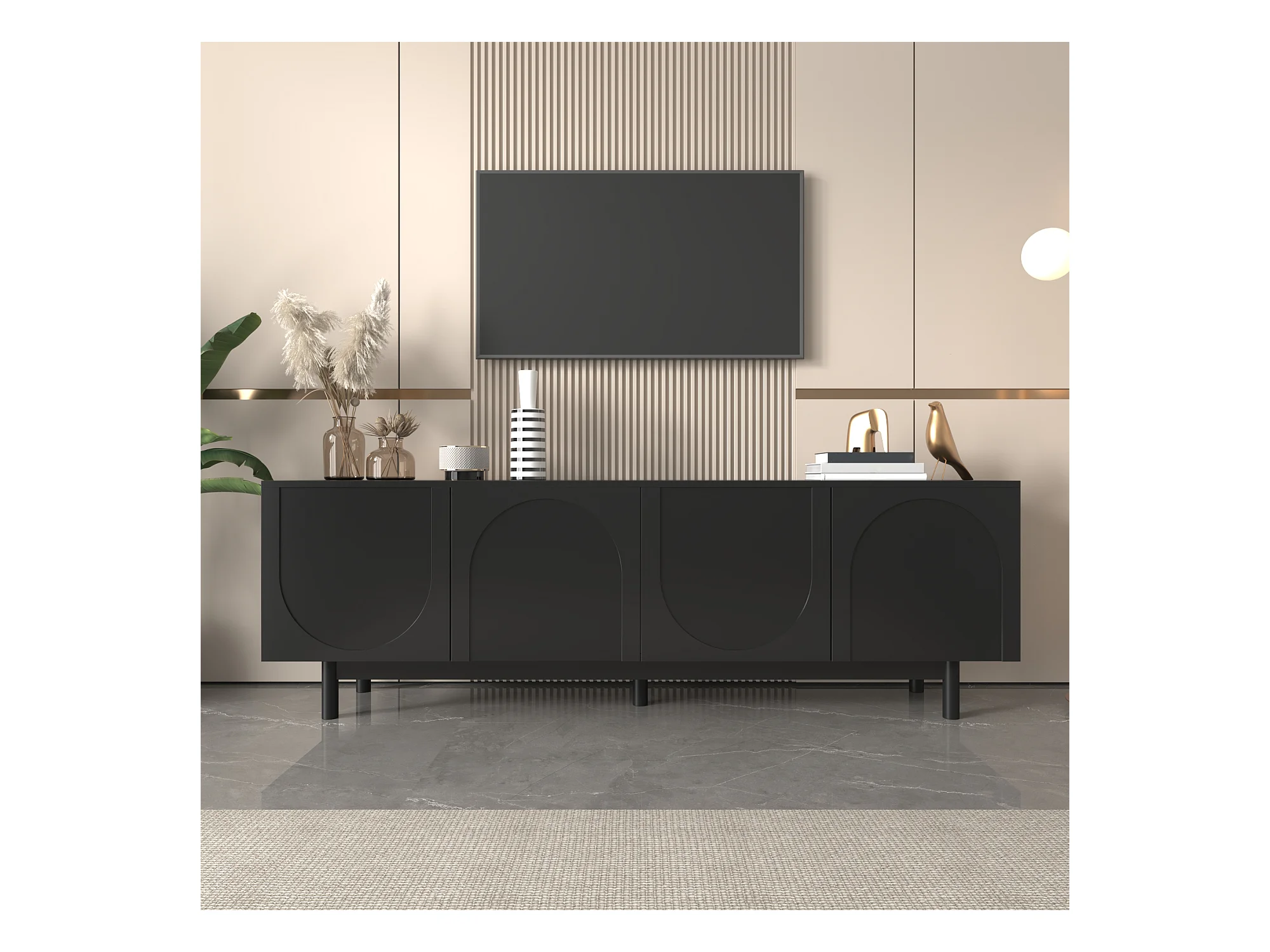Móvel de TV de 175 cm, Móvel de TV com 4 portas sem puxadores e prateleiras ajustáveis, preto
