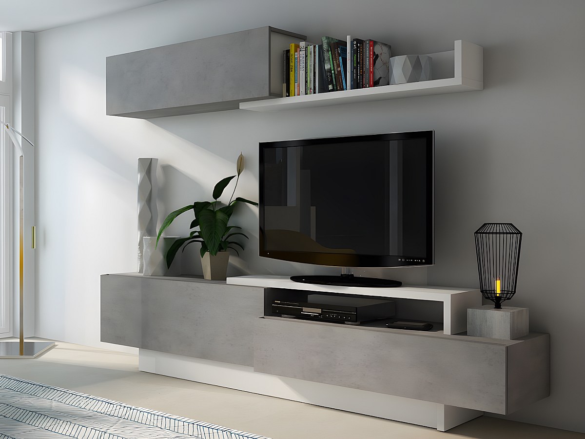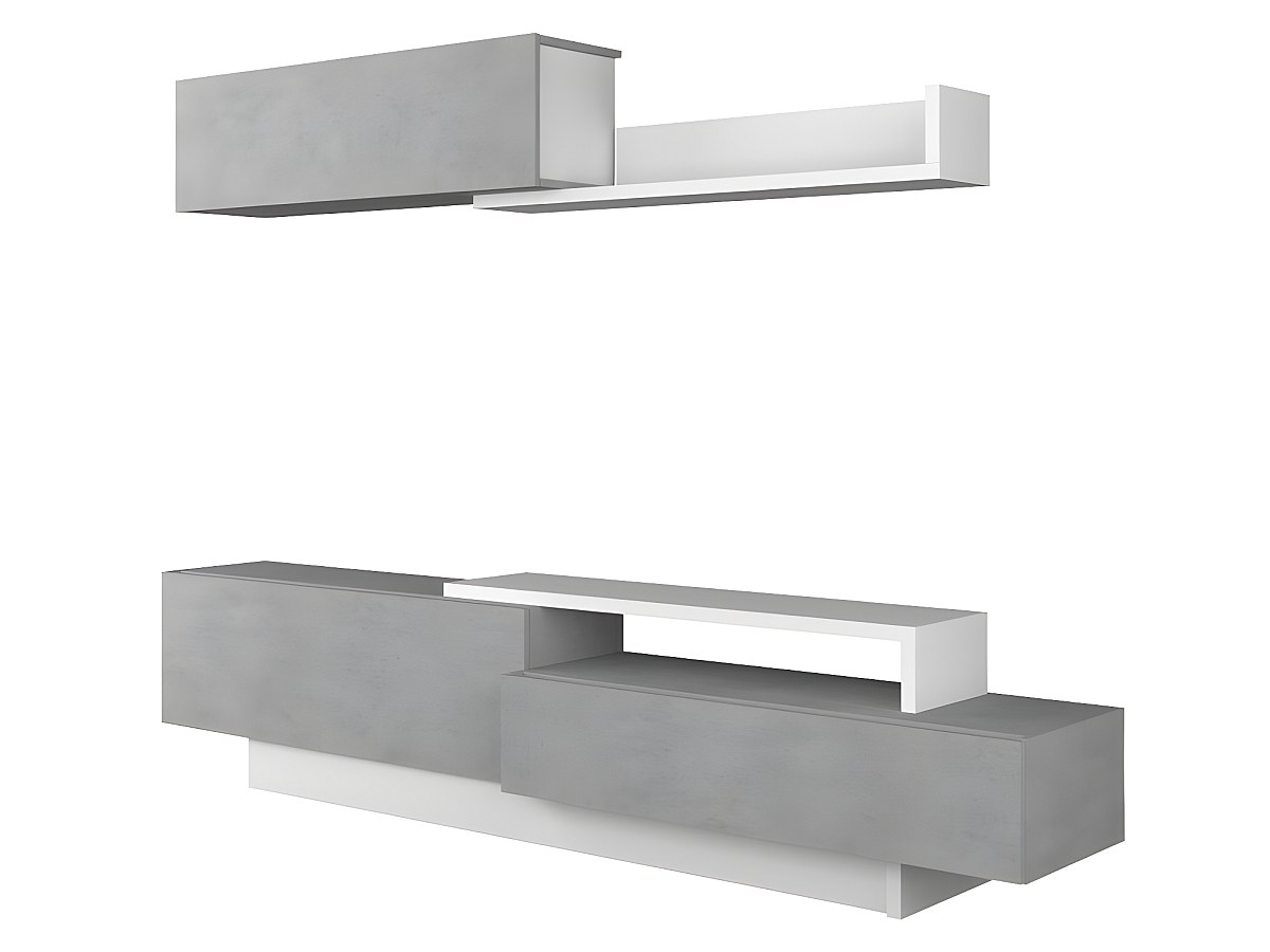 Móvel de TV de parede MONTY com arrumações - Betão e branco