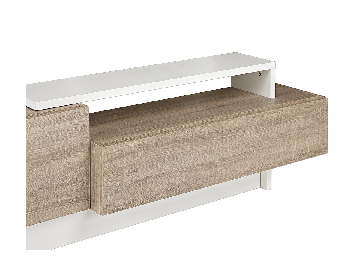 Móvel de TV de parede MONTY com arrumações - Branco e carvalho