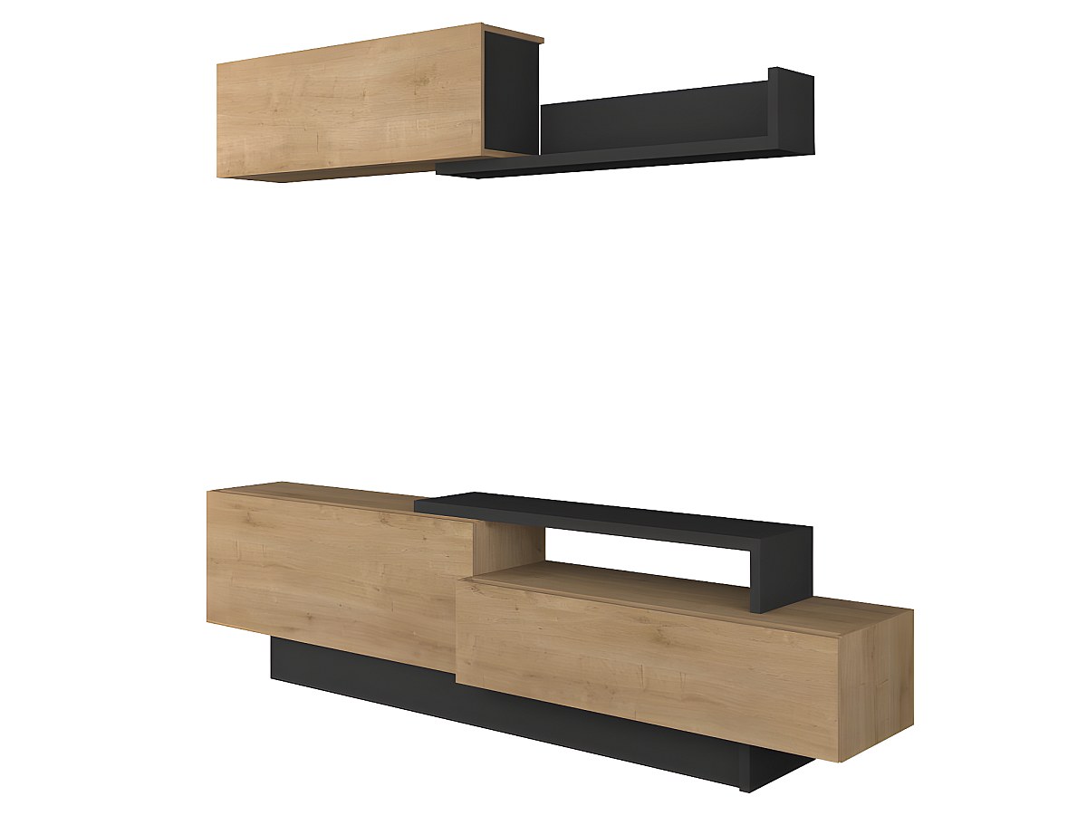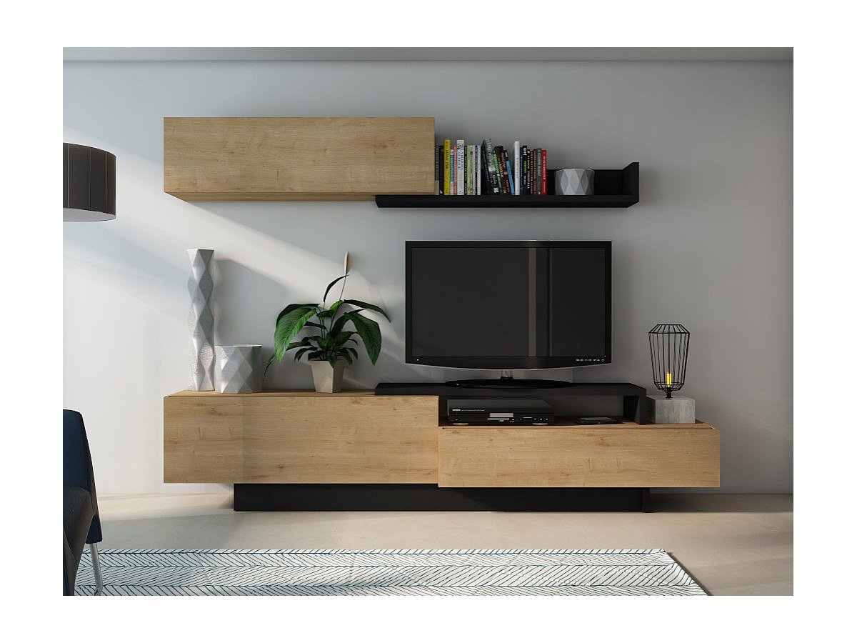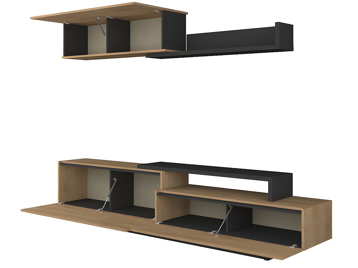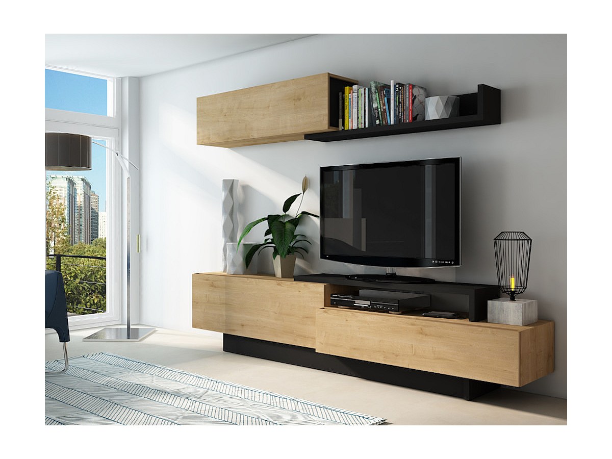 Móvel de TV de parede MONTY com arrumações - Cor carvalho & antracite