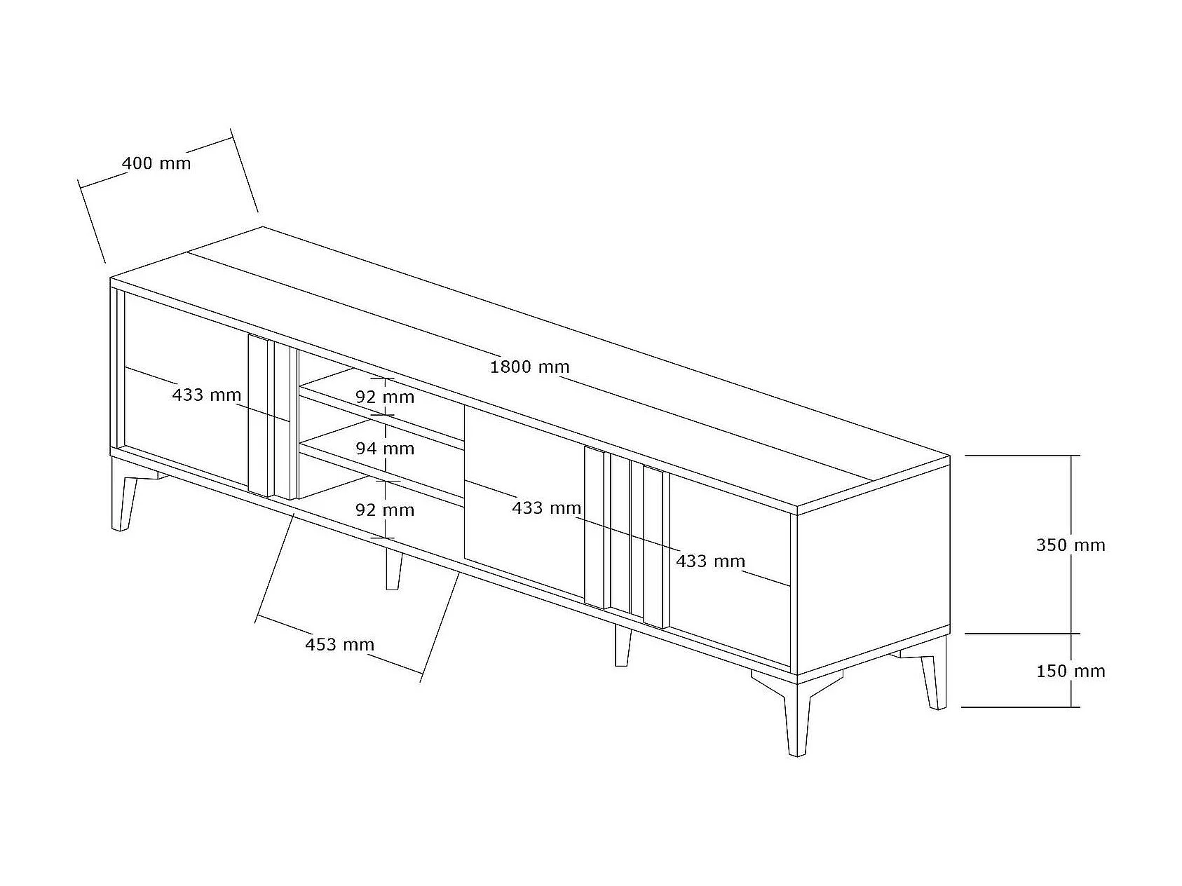 Móvel de TV elegante – 180 cm – Atlântico e Antracite – Painel de partículas revestido a melamina