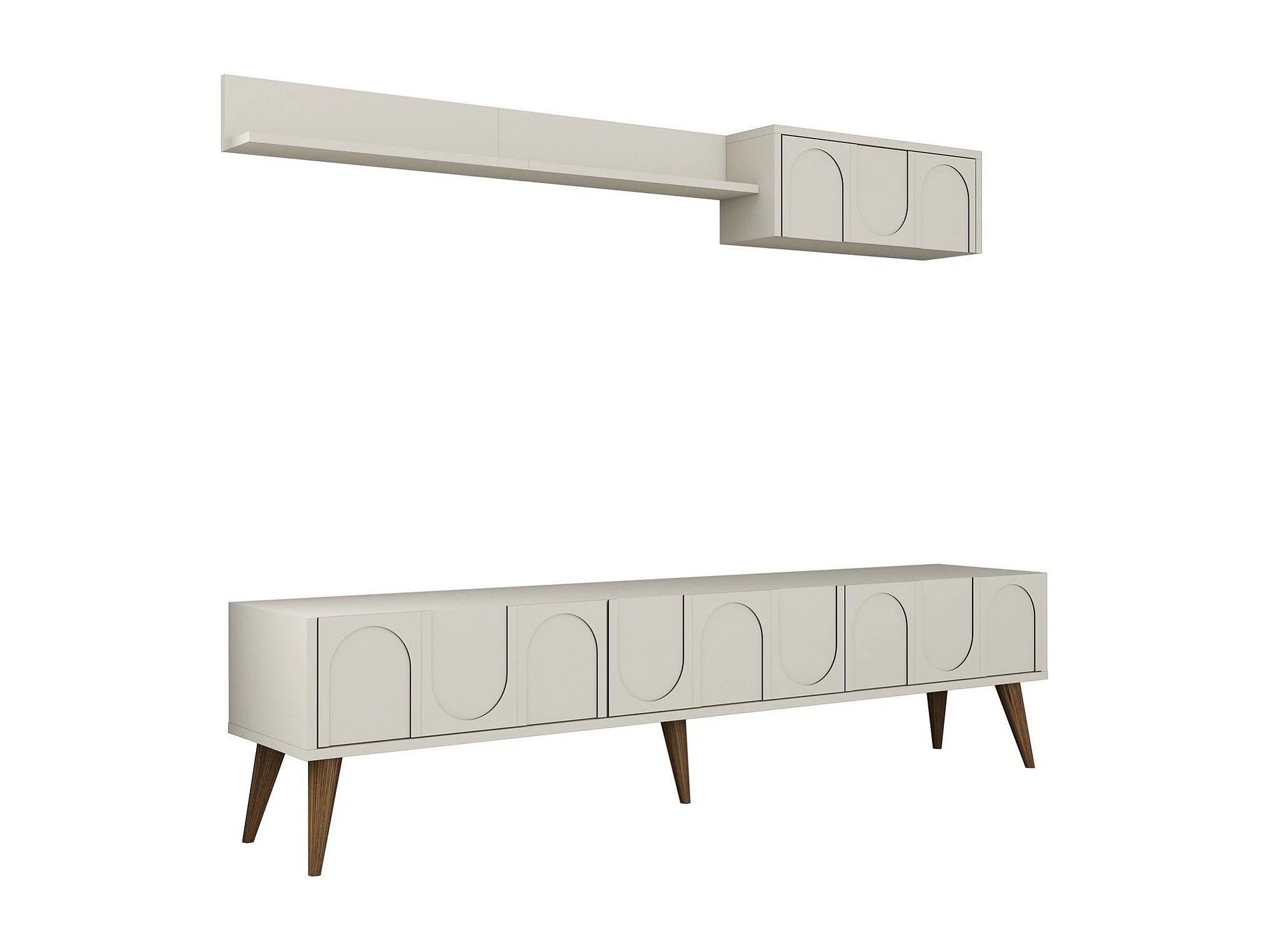 Móvel de TV moderno – 180 x 44 x 35 cm – Noz e Creme – MDF revestido em melamina