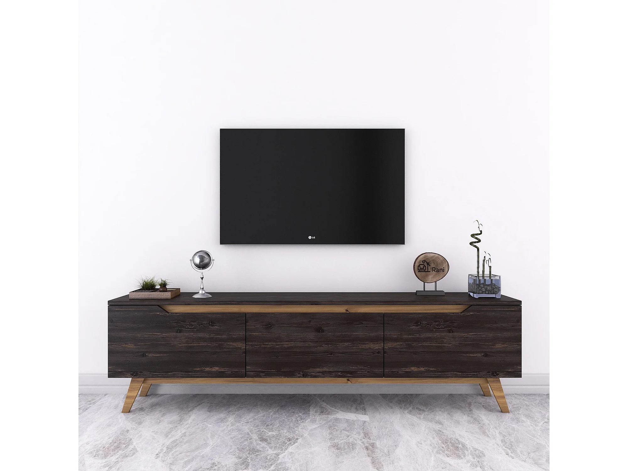 Móvel de TV elegante – 180 x 48,6 x 35 cm – Preto e nogueira – Painel de partículas revestido de melamina