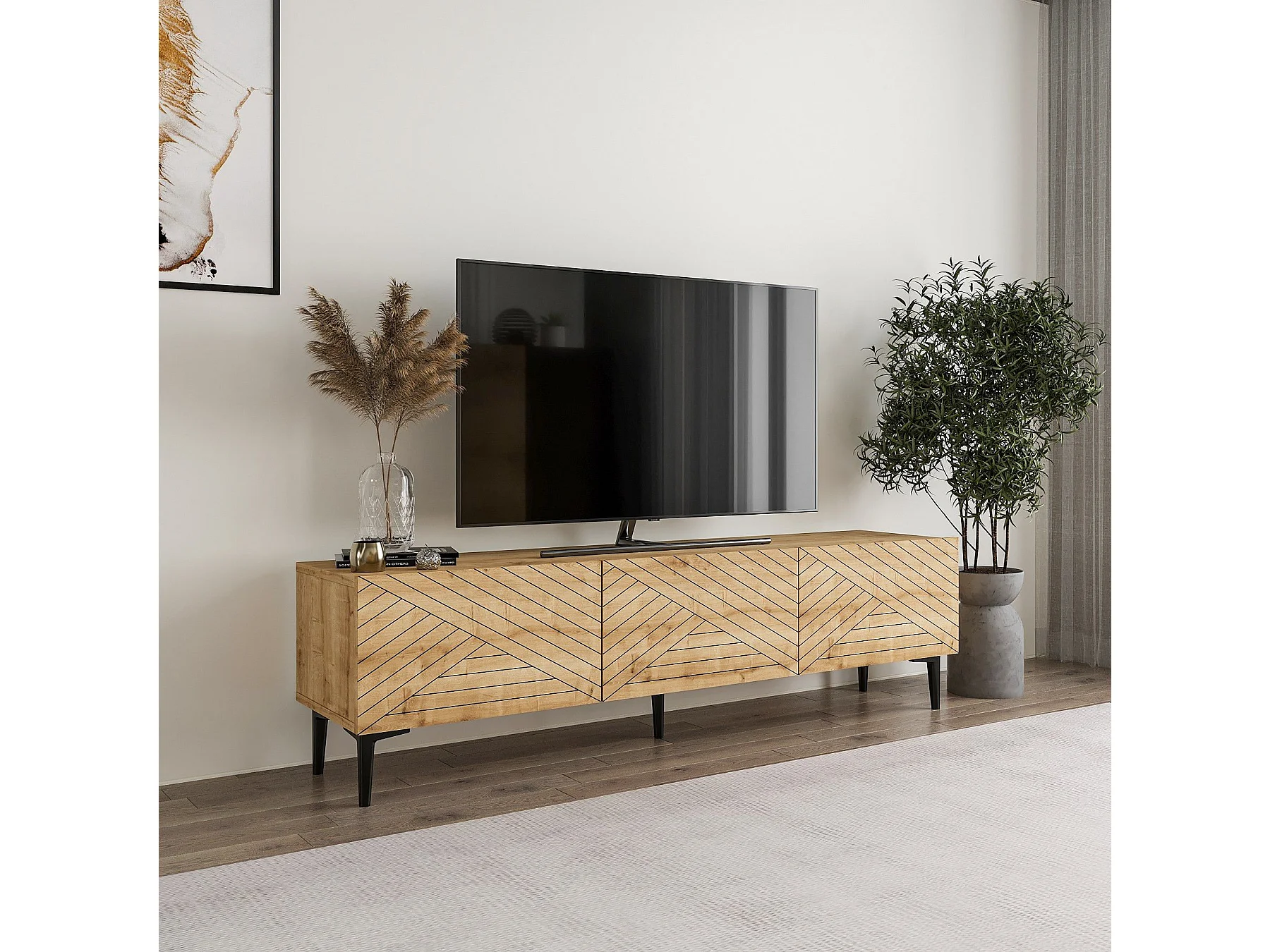 Móvel de TV moderno em melamina – 180 cm – Carvalho