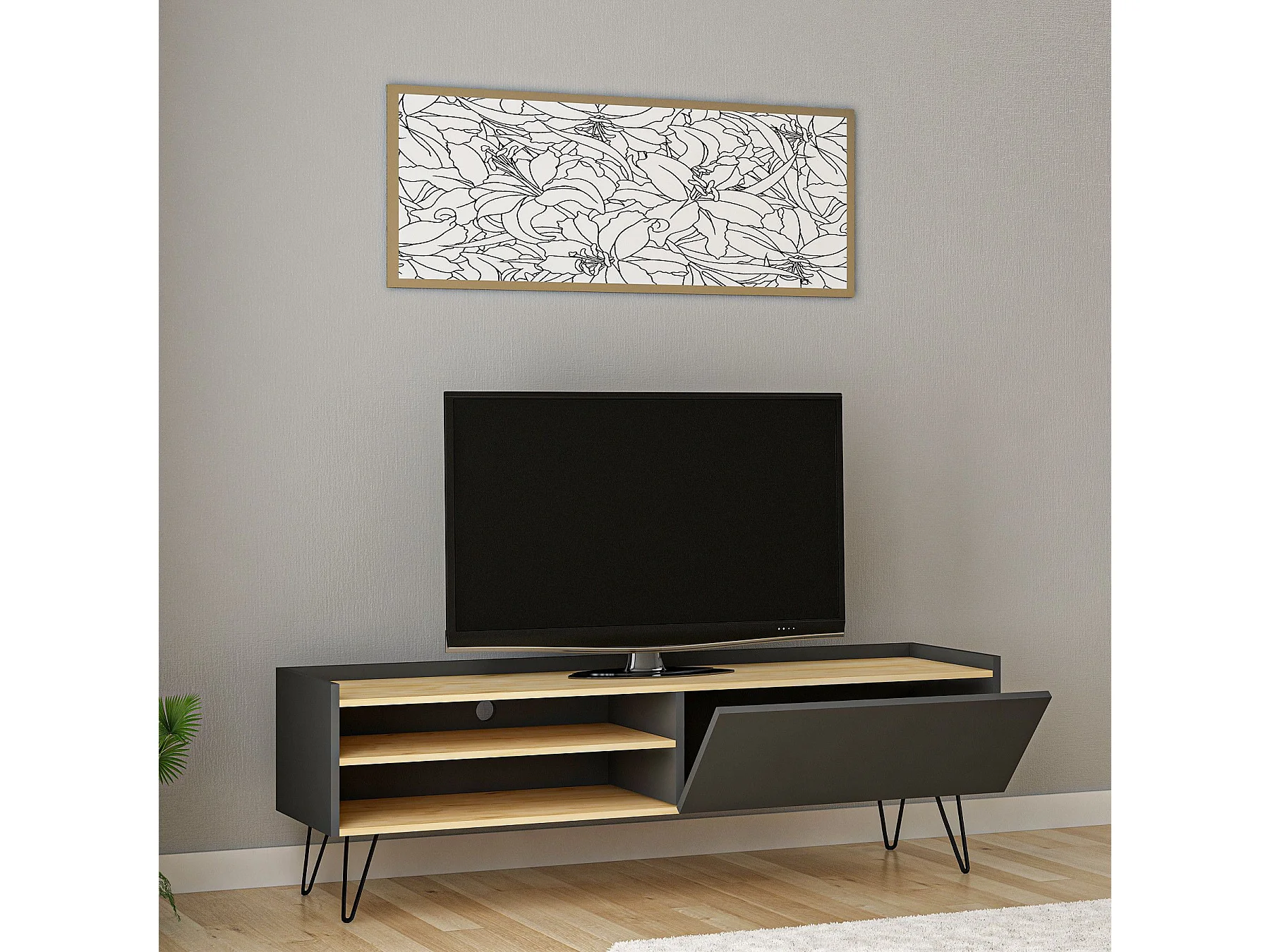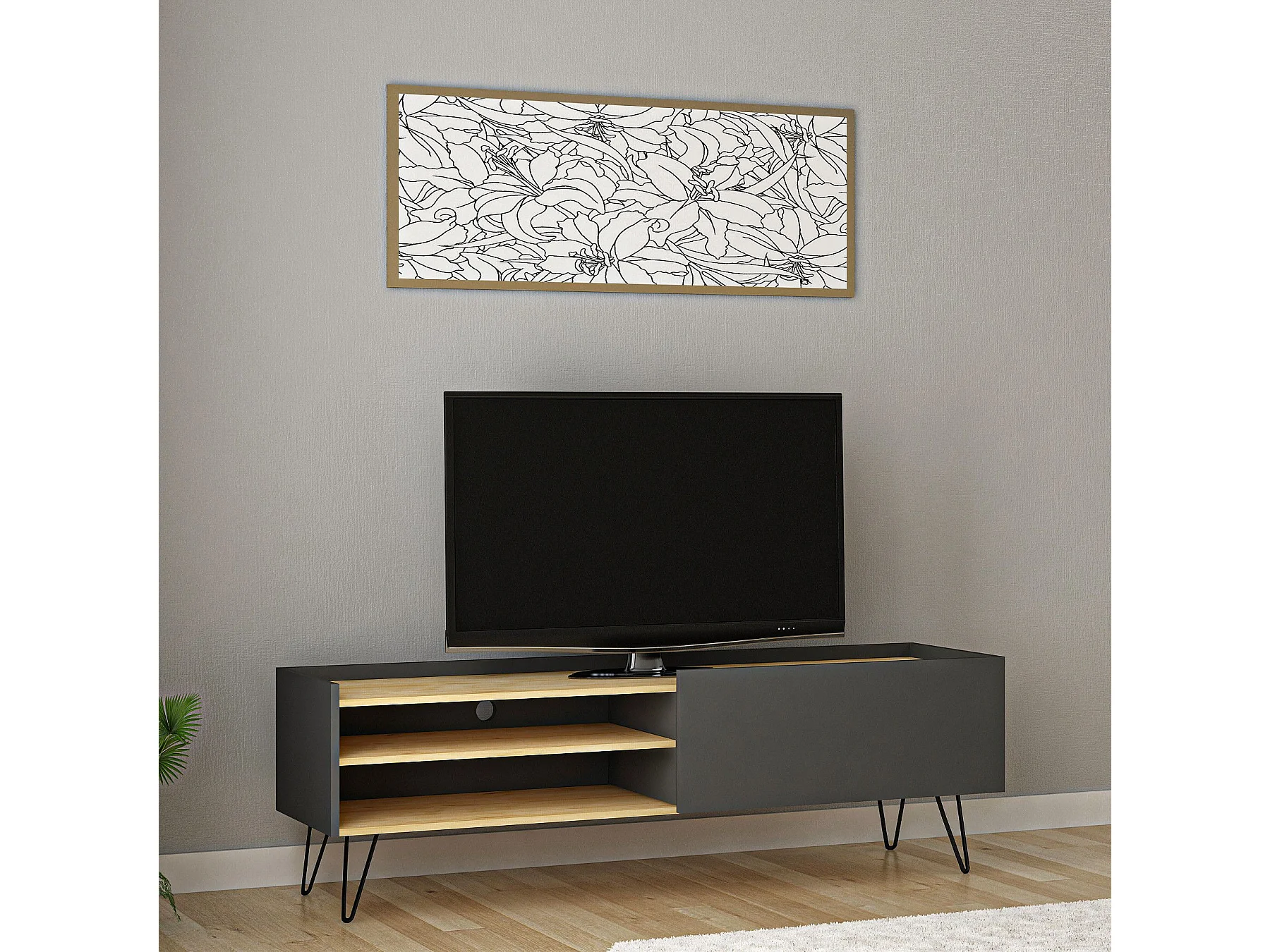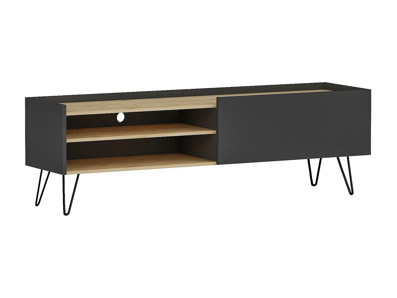 Móvel de TV escandinavo – 120 cm – Carvalho e antracite – Painel de partículas revestido a melamina