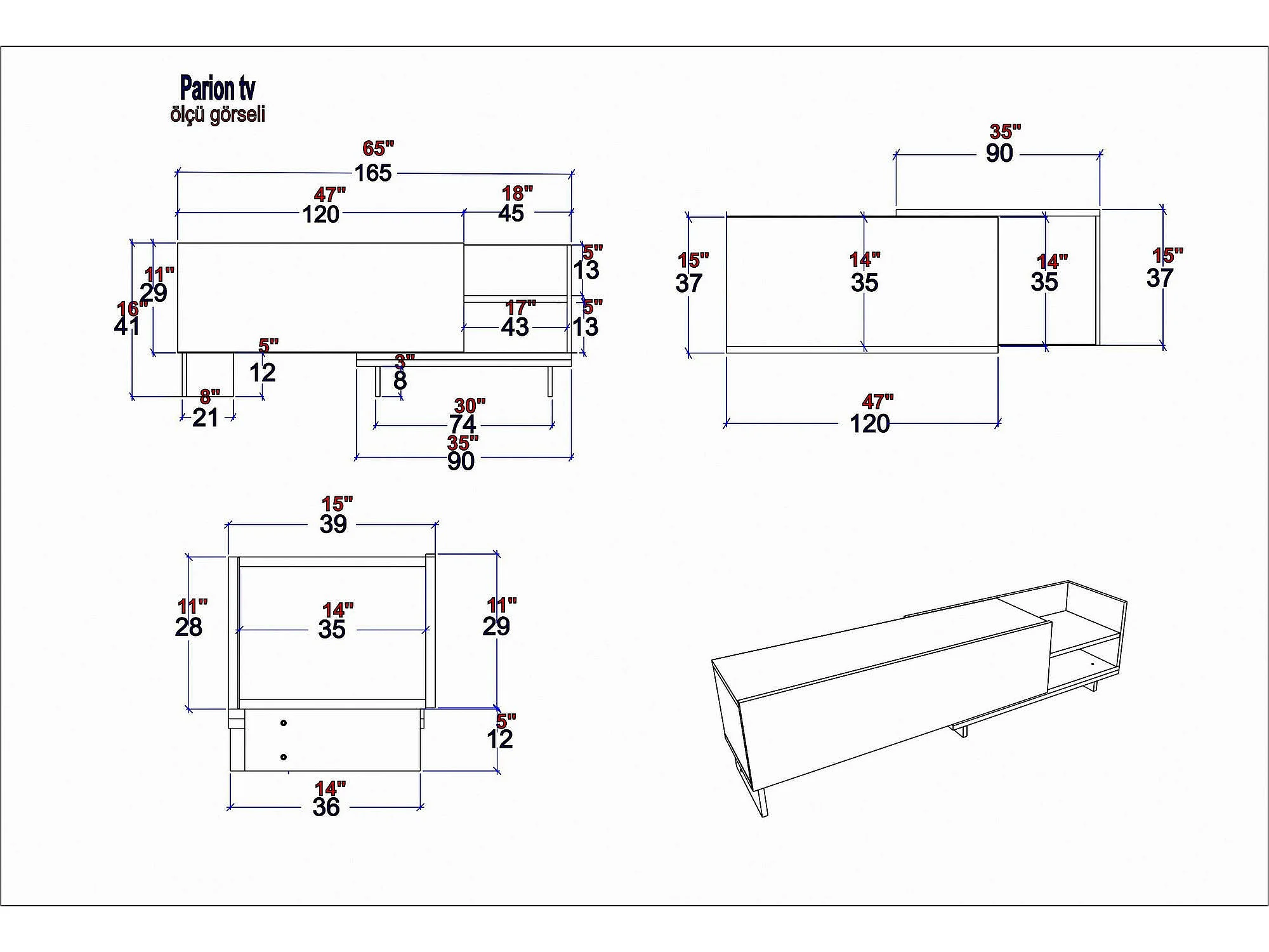 Móvel de TV escandinavo, 165 cm, branco e safira, 100% aglomerado revestido em melamina, 18 mm de espessura | Elegante e funcional para salas de estar modernas