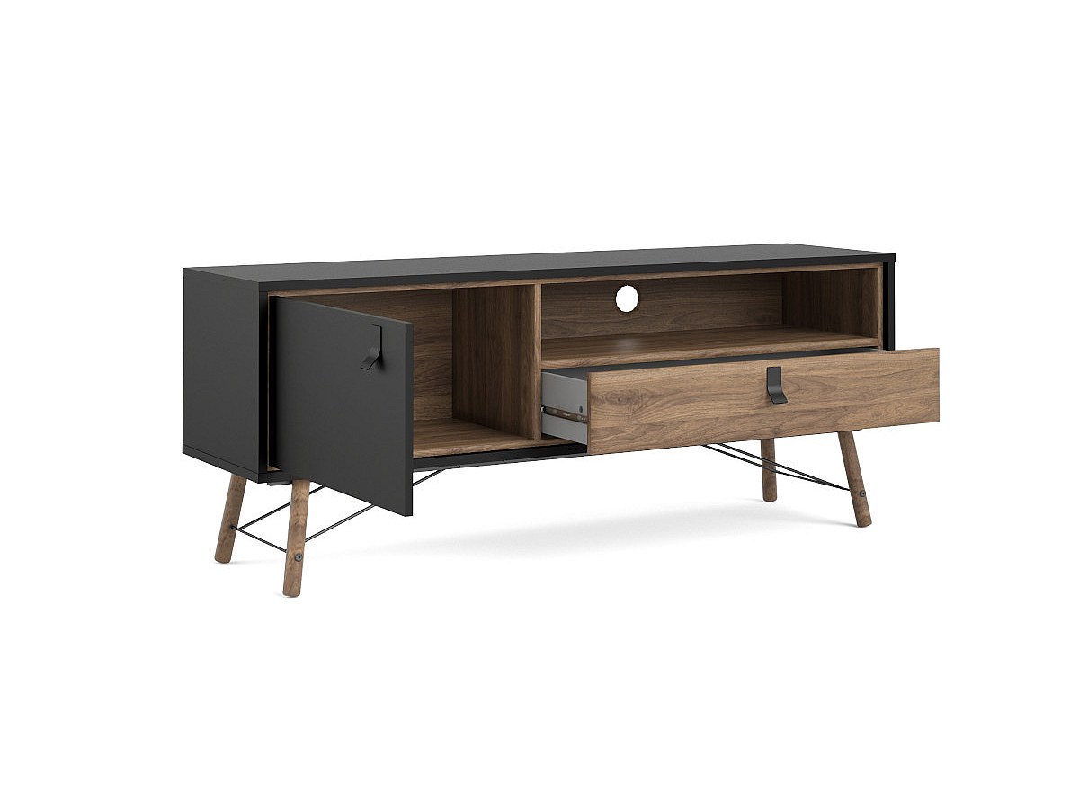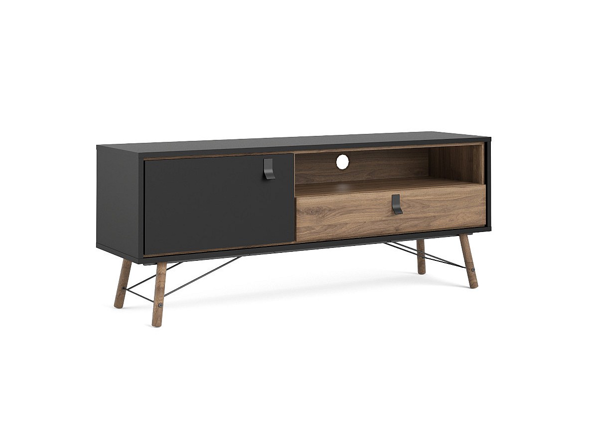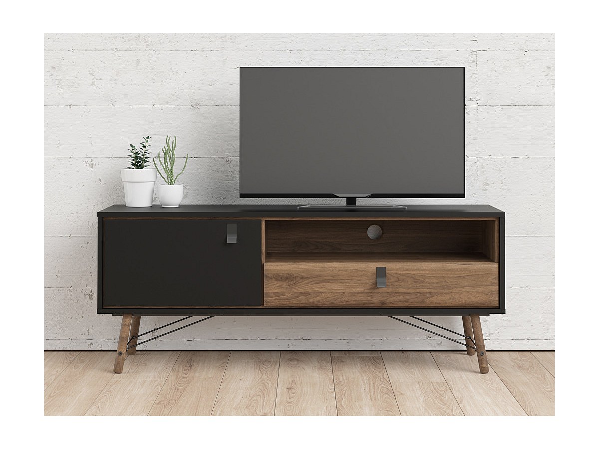 Móvel de TV FURESO - 1 porta e 1 gaveta - Cor: castanho noz e antracite
