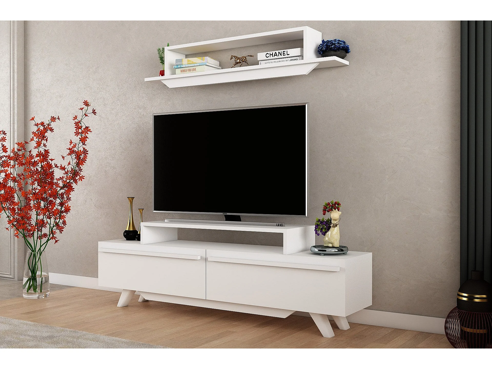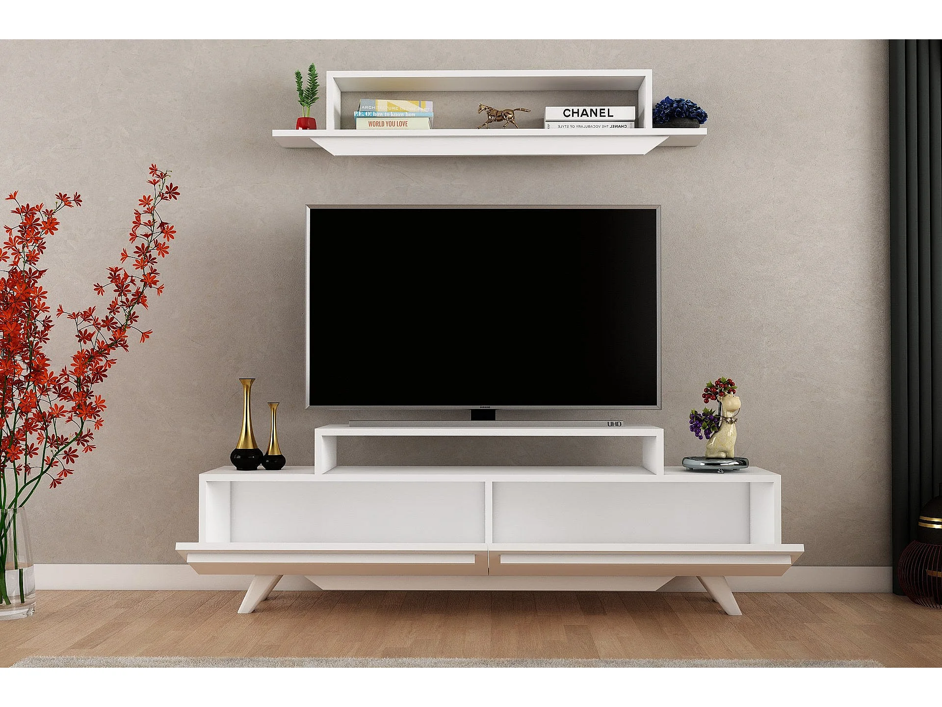 Móvel de TV moderno – 180 cm – Branco e Córdoba – Painel de partículas