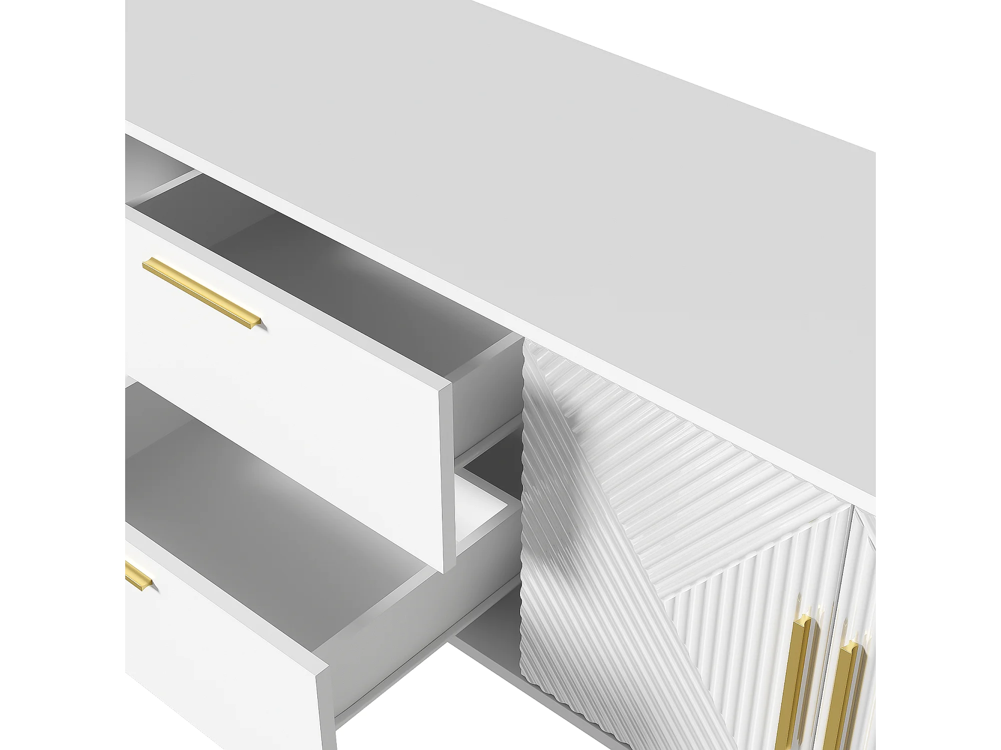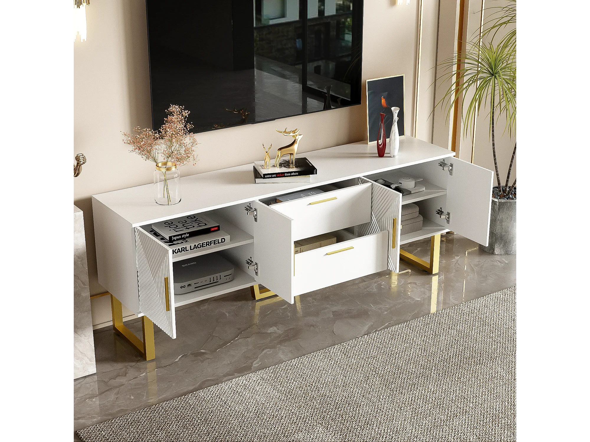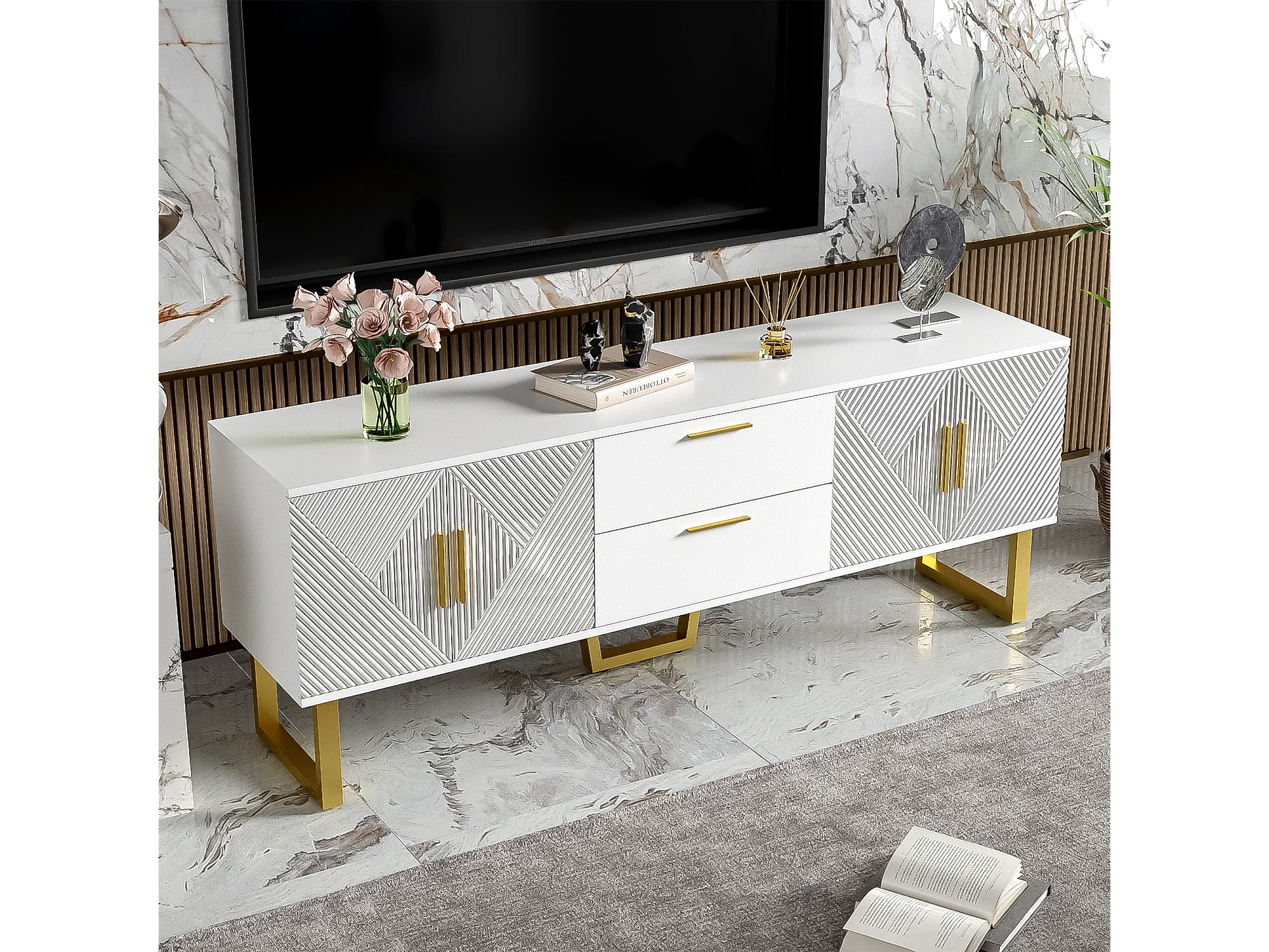 Móvel de TV lacado branco, 170 cm, 4 portas e 2 gavetas, branco