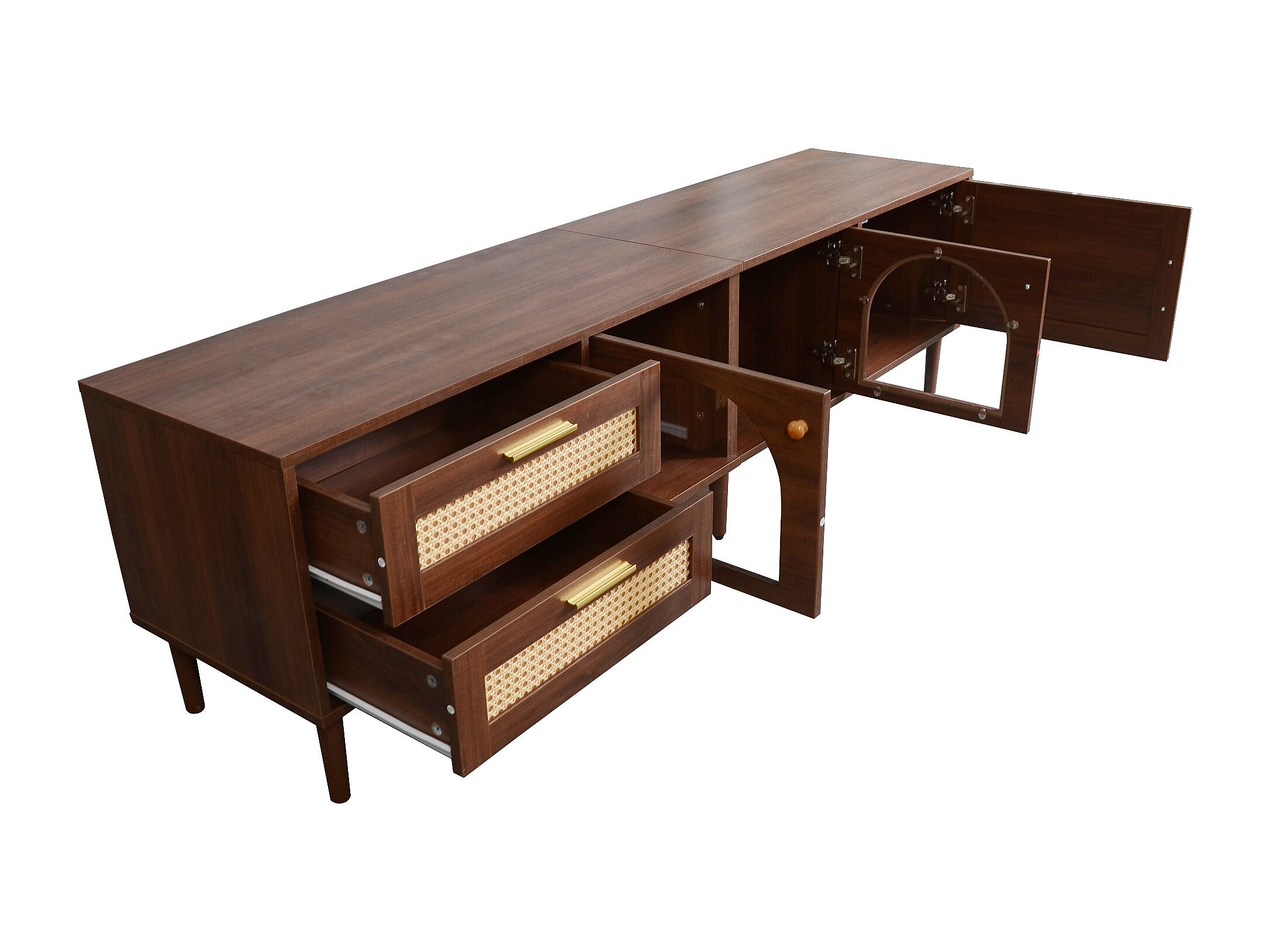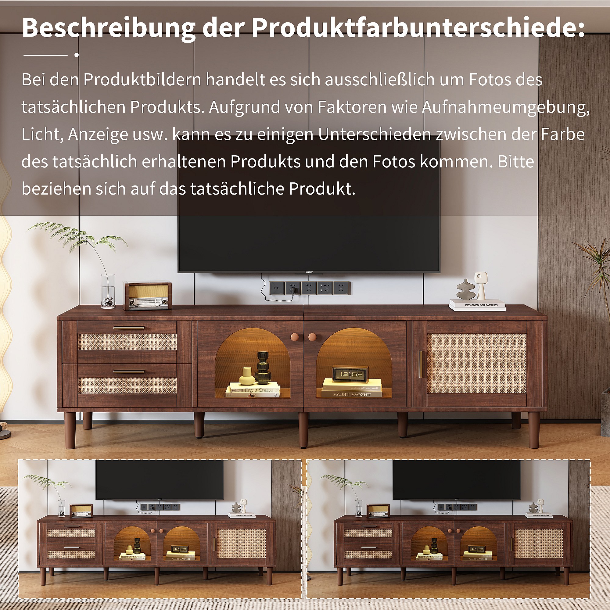 Móvel de TV marrom de 180 cm, 2 portas, rattan, 4 gavetas, moderno, sala de estar, móvel de TV