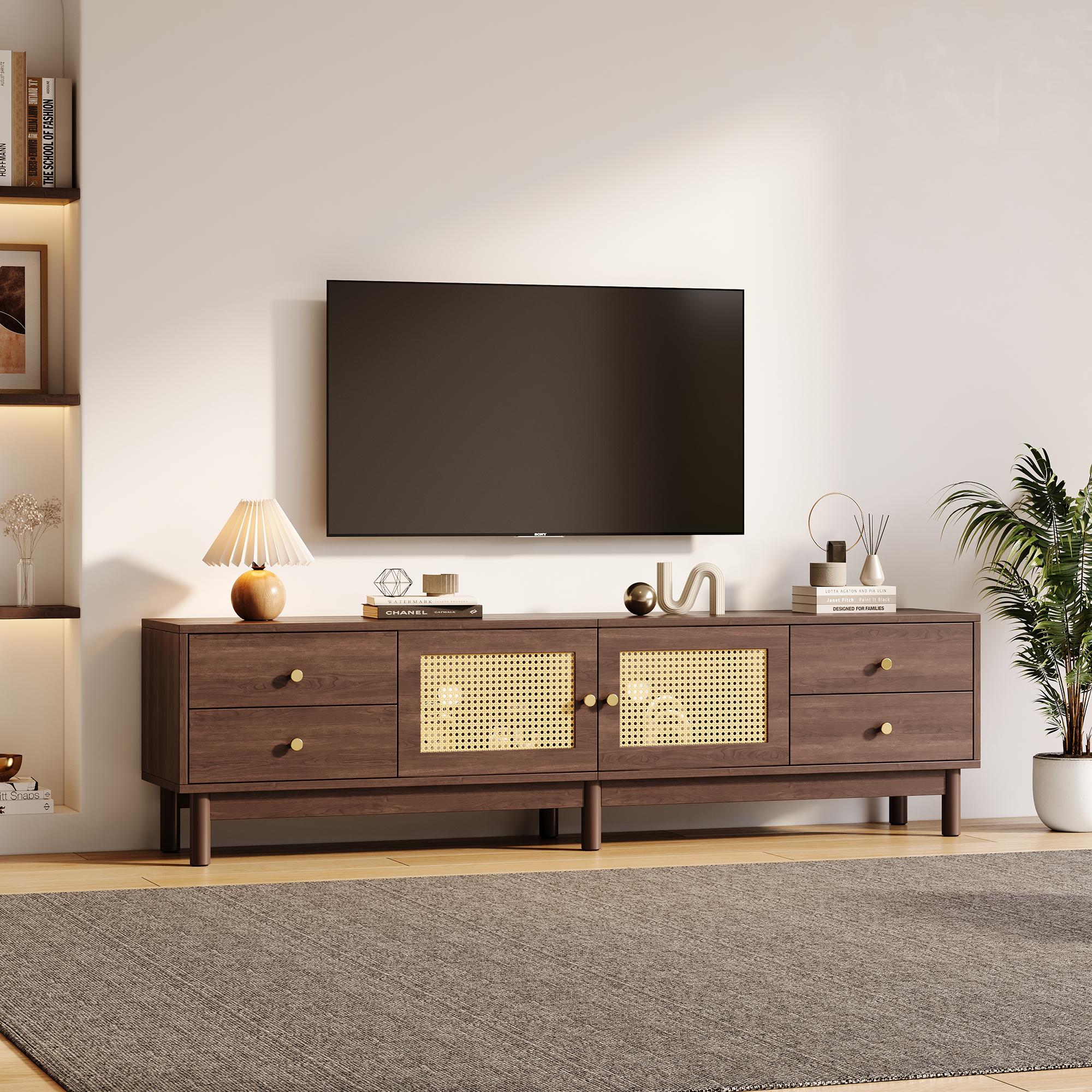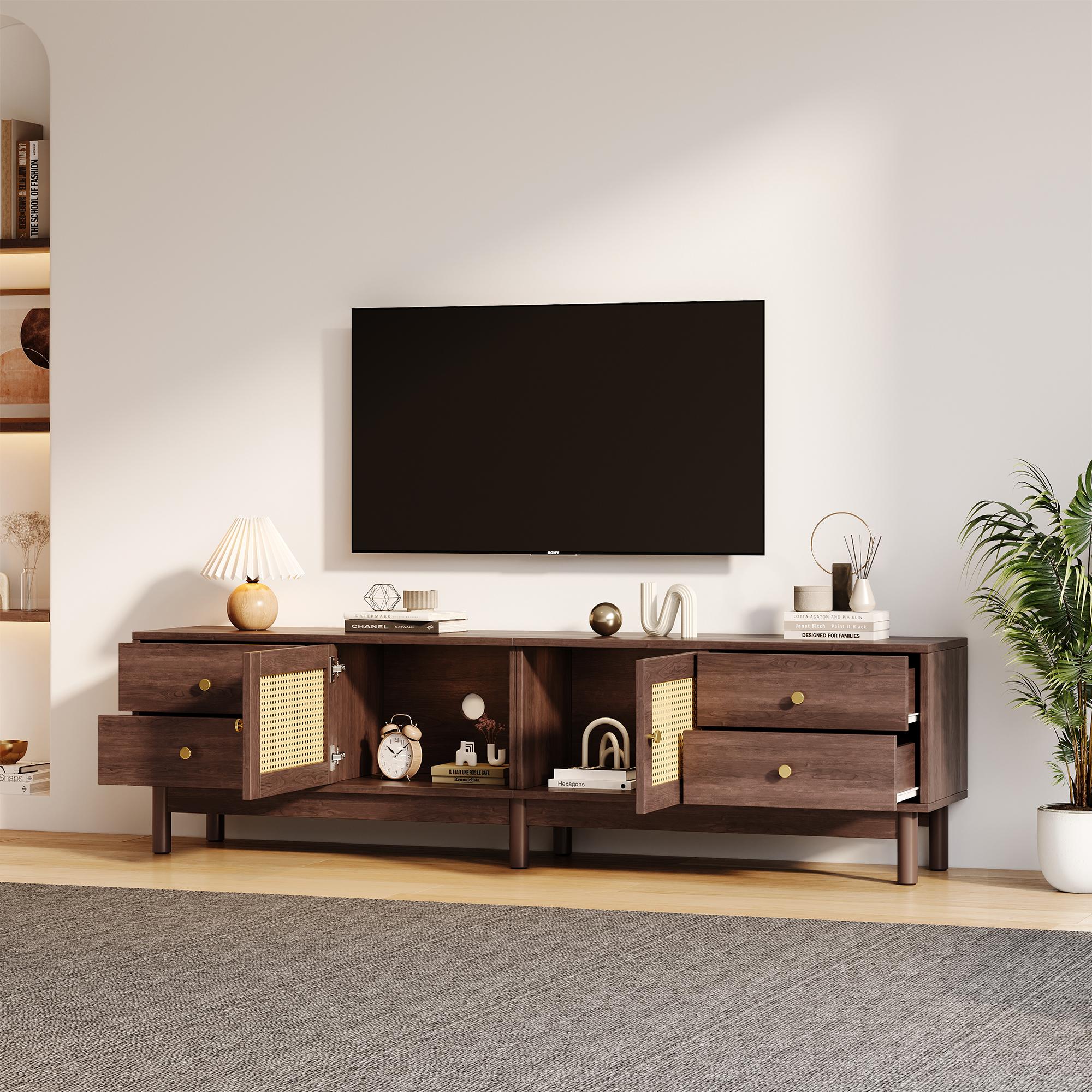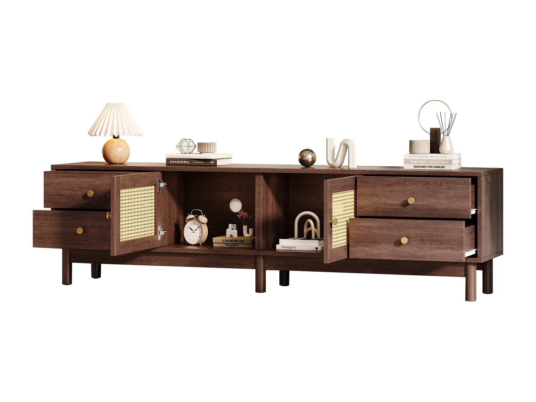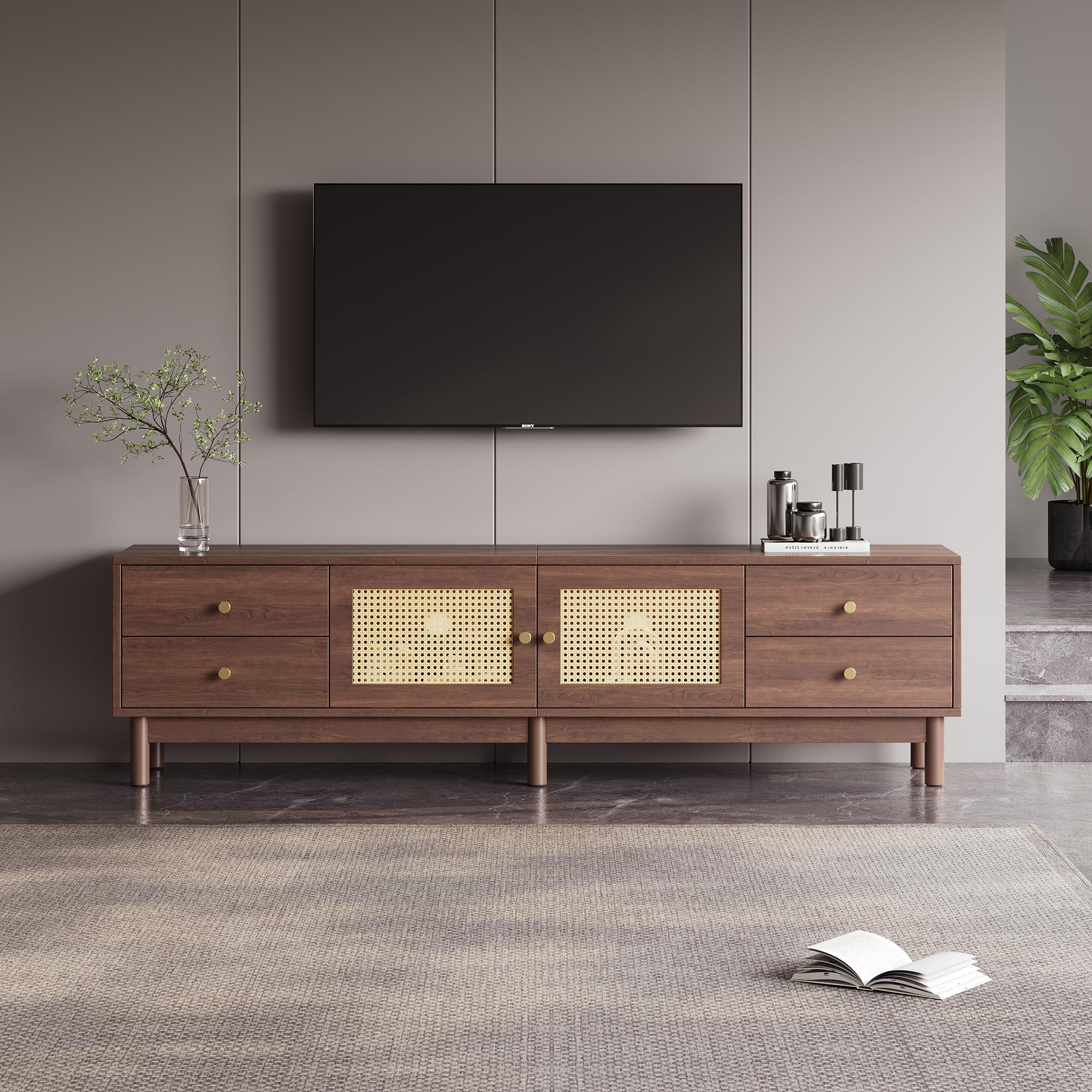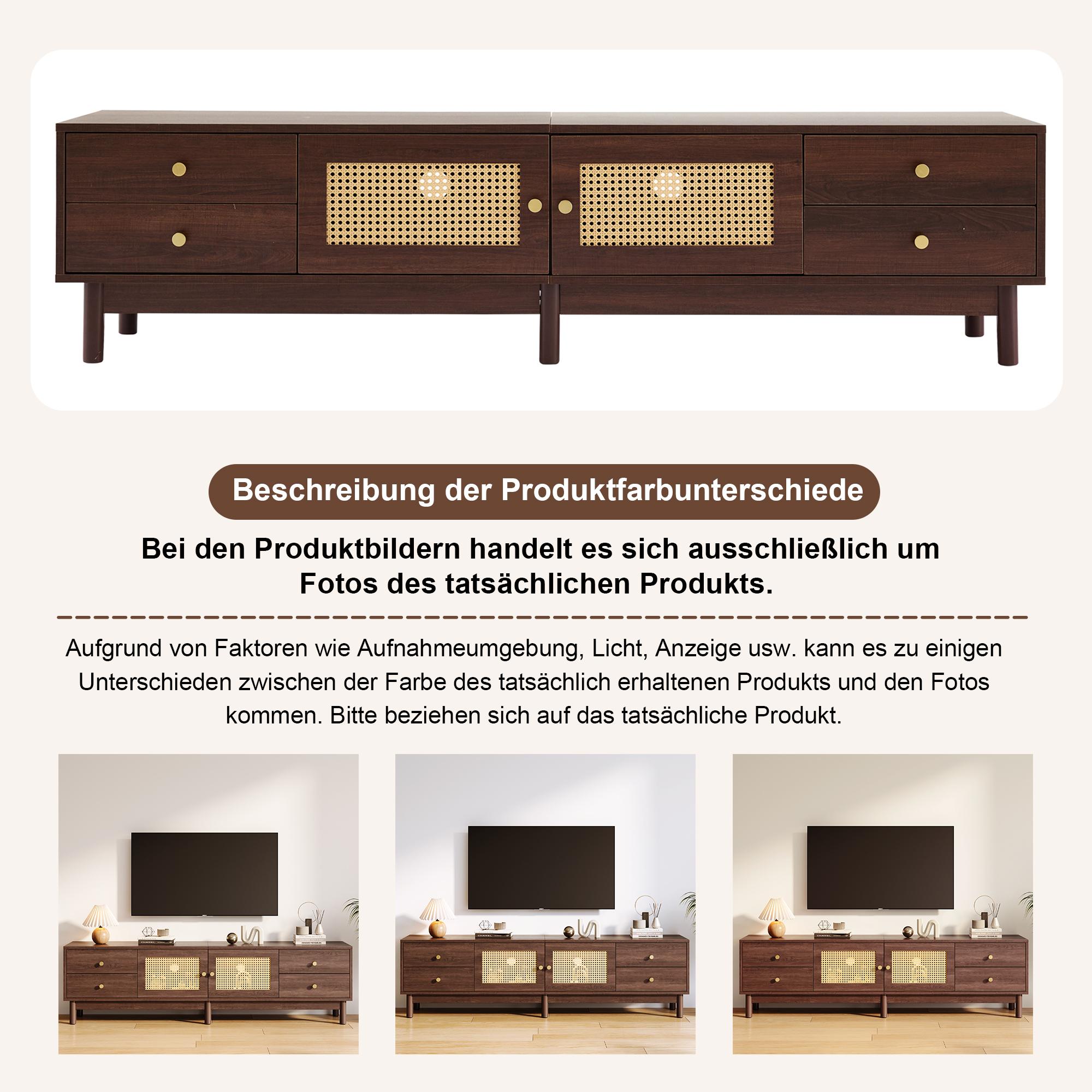 Móvel de TV marrom de 180 cm, 2 portas, rattan, 4 gavetas, moderno, sala de estar, móvel de TV