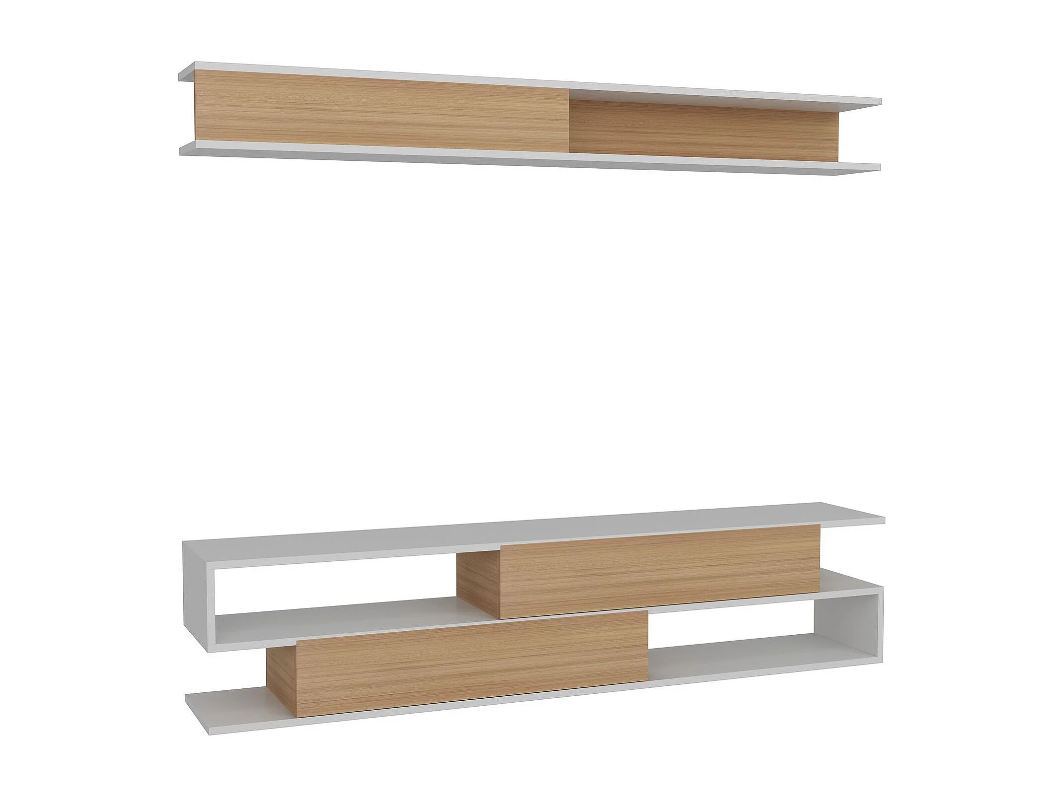 Móvel de TV moderno – 176 x 39 x 31,5 cm – Branco e Teca – Painéis de partículas revestidos a melamina