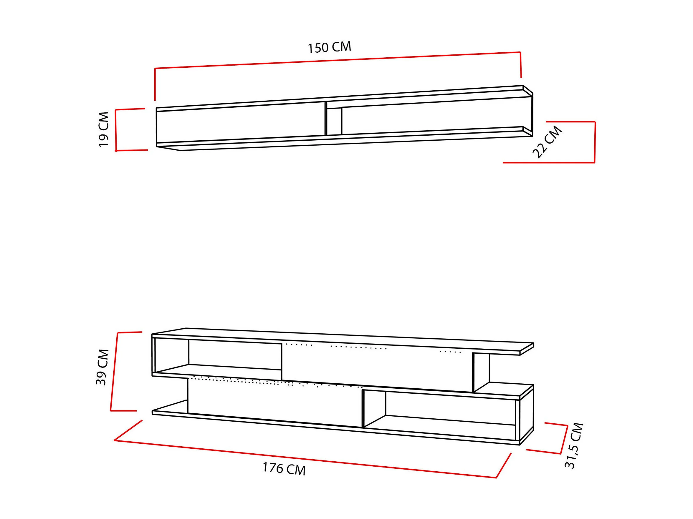 Móvel de TV moderno – 180 x 30 x 48 cm – Branco e Preto – Melamina