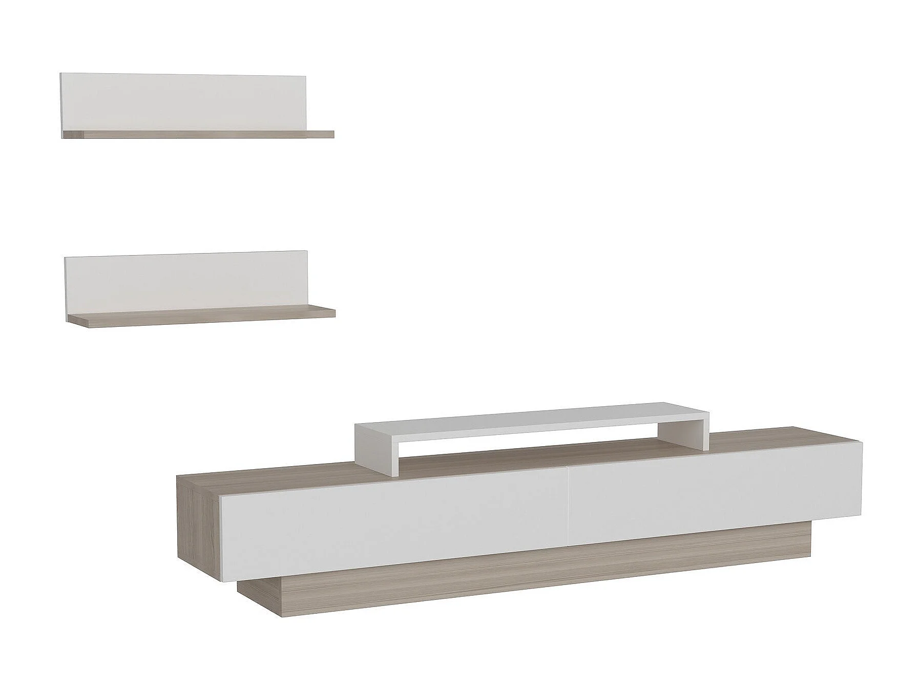 Móvel de TV moderno – 180 cm – Branco e Teca – Painéis de partículas revestidos de melamina