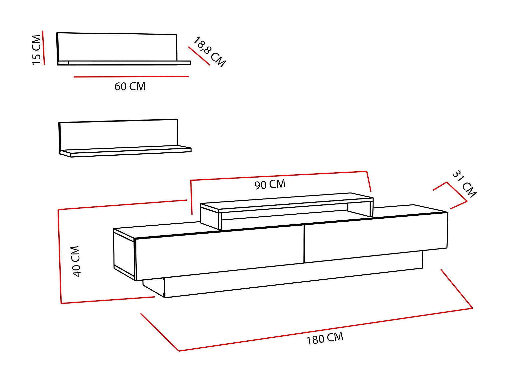 Móvel de TV moderno – 180x40x37 cm – Branco – Melamina
