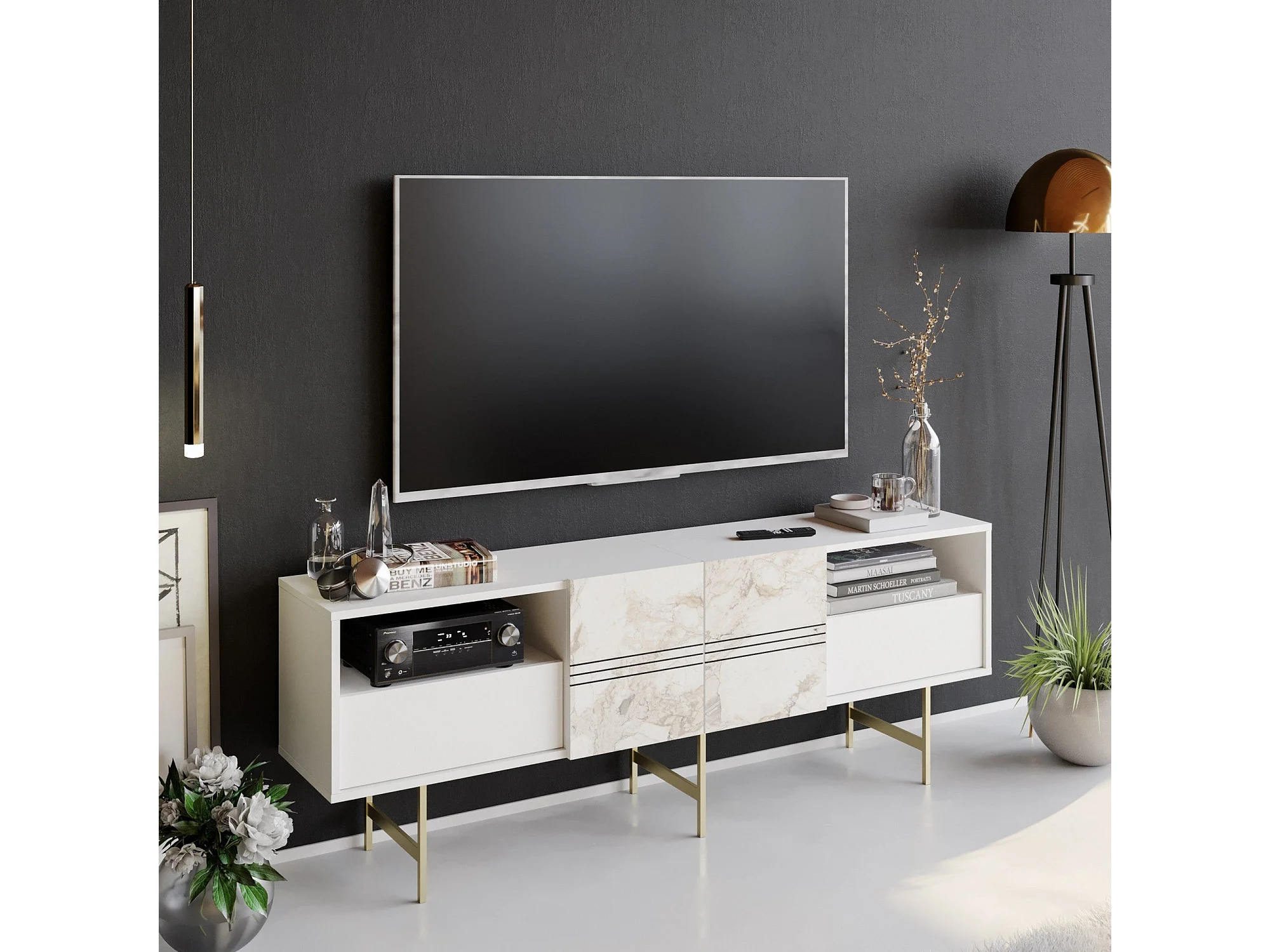 Móvel de TV – 180 cm x 45,2 cm x 35 cm – Mármore branco e dourado – Melamina