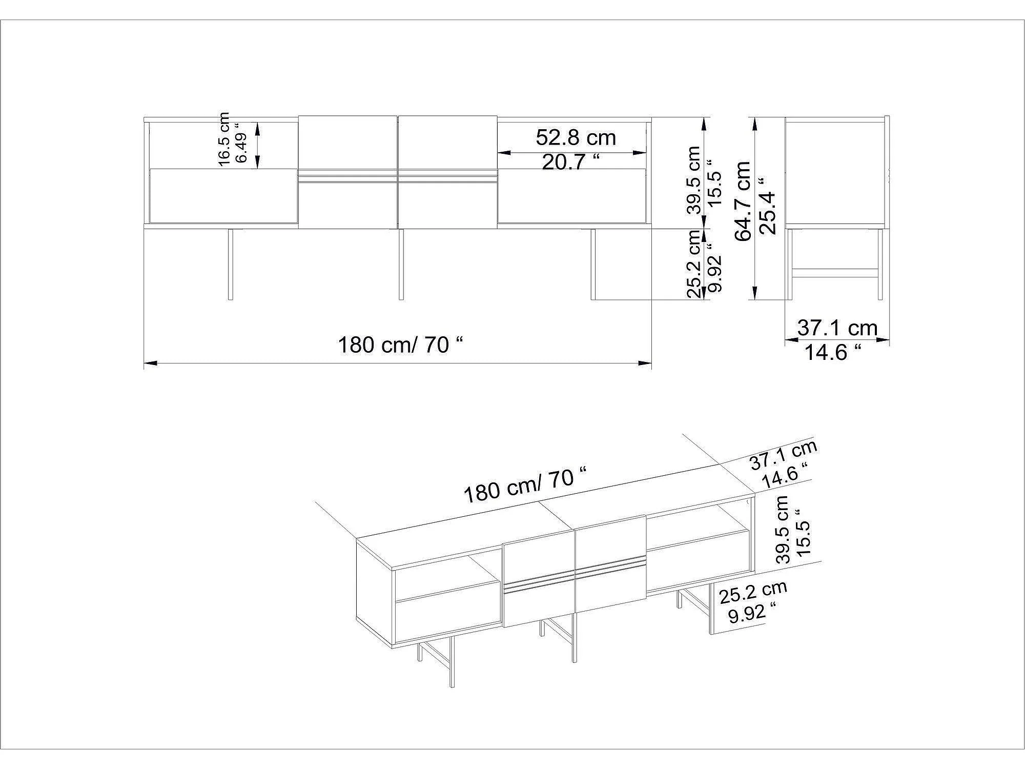 Móvel de TV moderno – 180 cm – Branco e Teca – Painéis de partículas revestidos de melamina