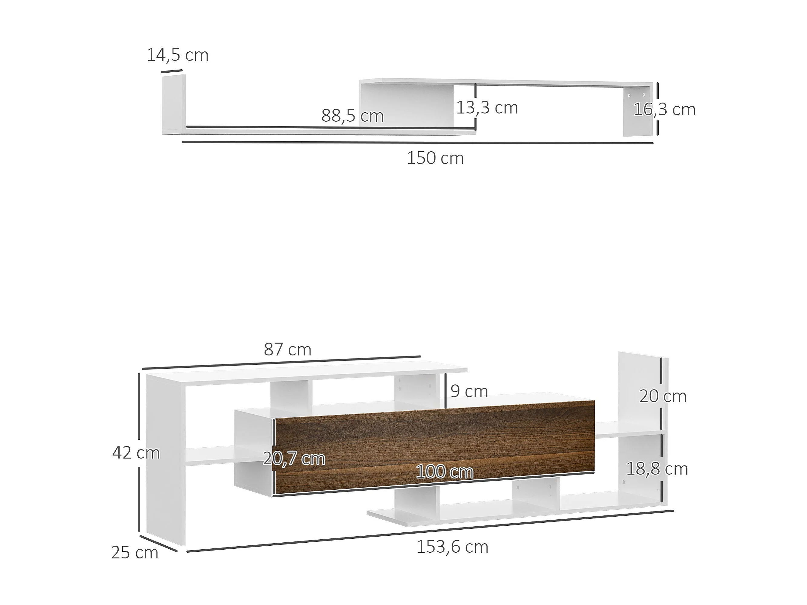 Móvel de TV suspenso, (2 x 100) x 34 x 32 cm, Carvalho Wotan