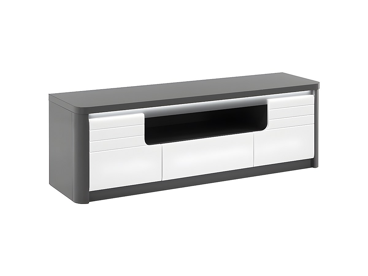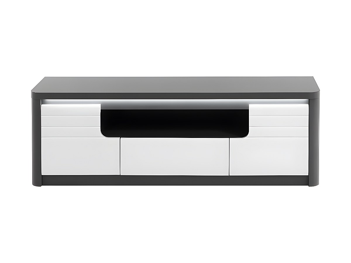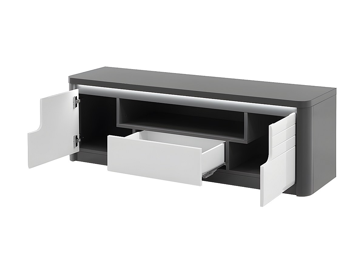 Móvel de TV PERCEPTION - LEDs - 2 portas e 1 gaveta - Cinzento e branco