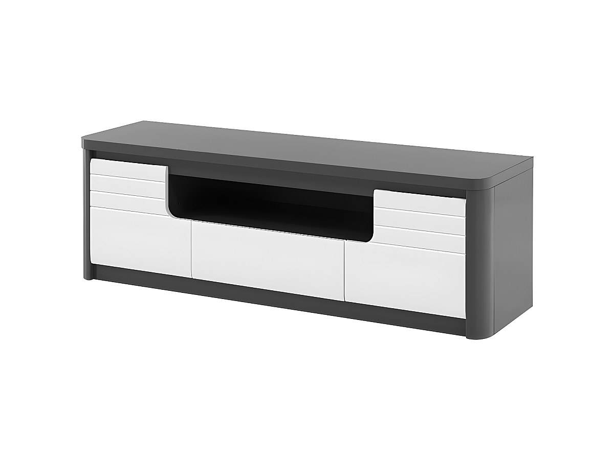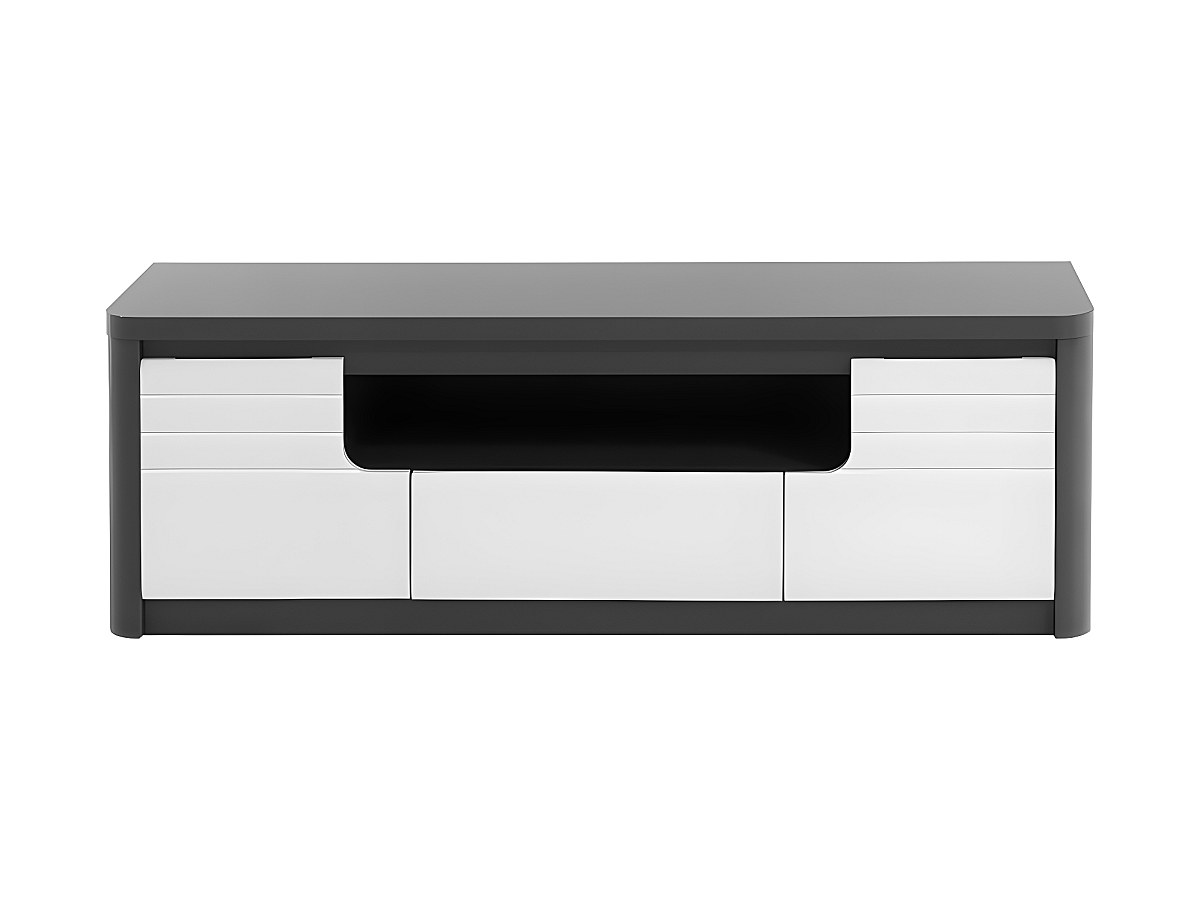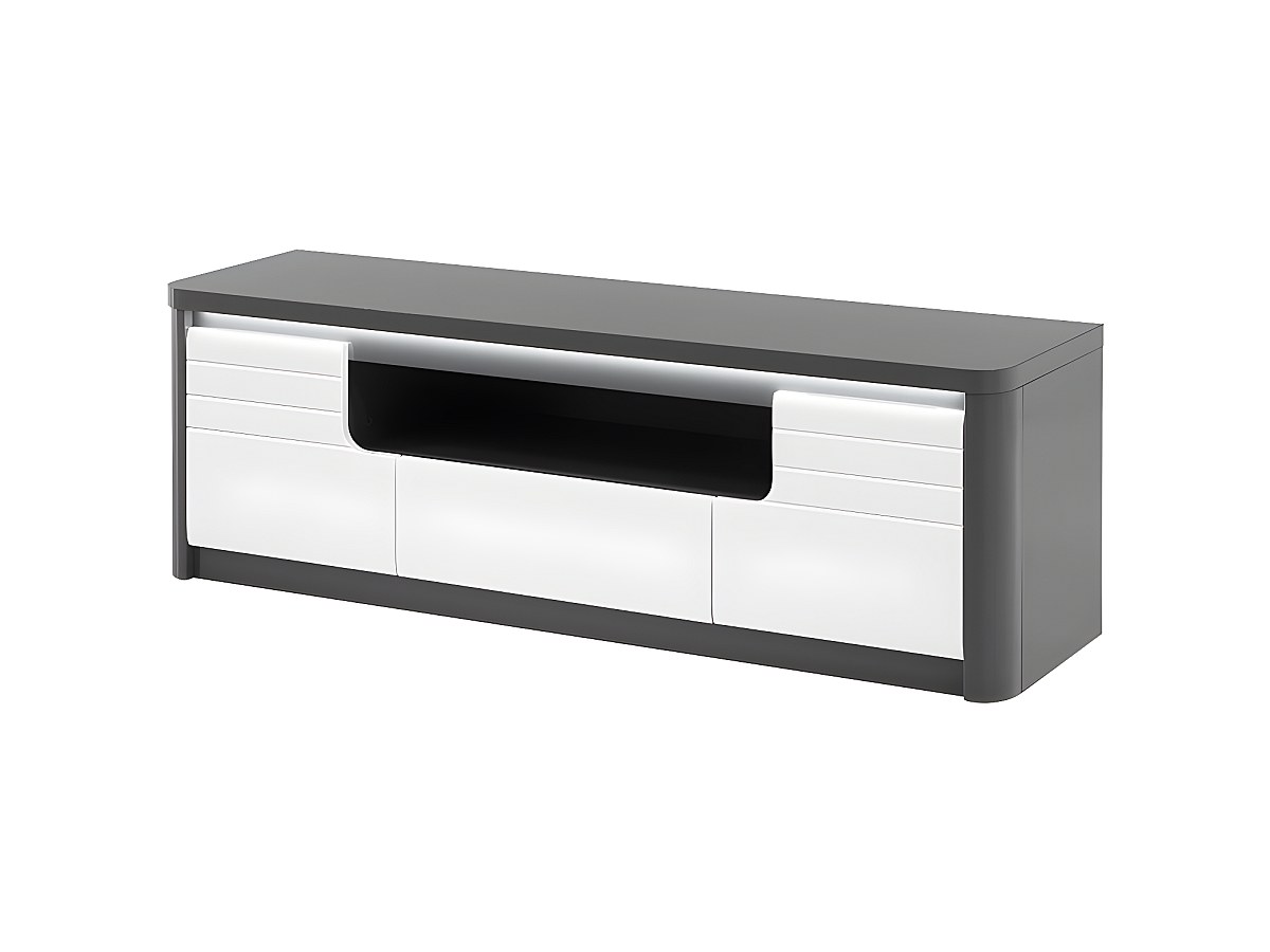 Móvel de TV PERCEPTION - LEDs - 2 portas e 1 gaveta - Cinzento e branco