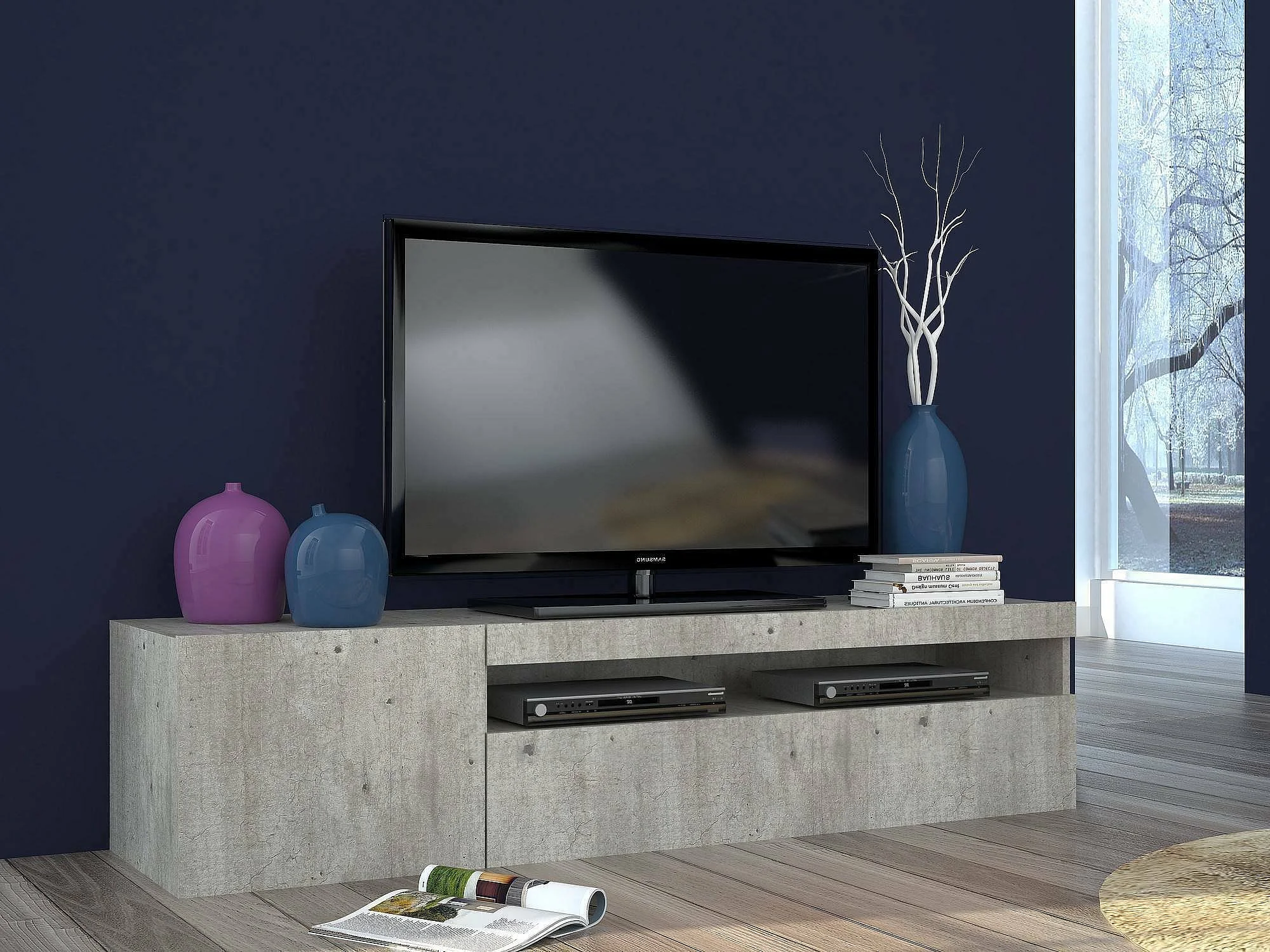 Móvel de TV Roberto, Aparador baixo de sala com 2 portas, Base de móvel de televisão, 100% Fabricado na Itália, 150x40h37 cm, Cimento