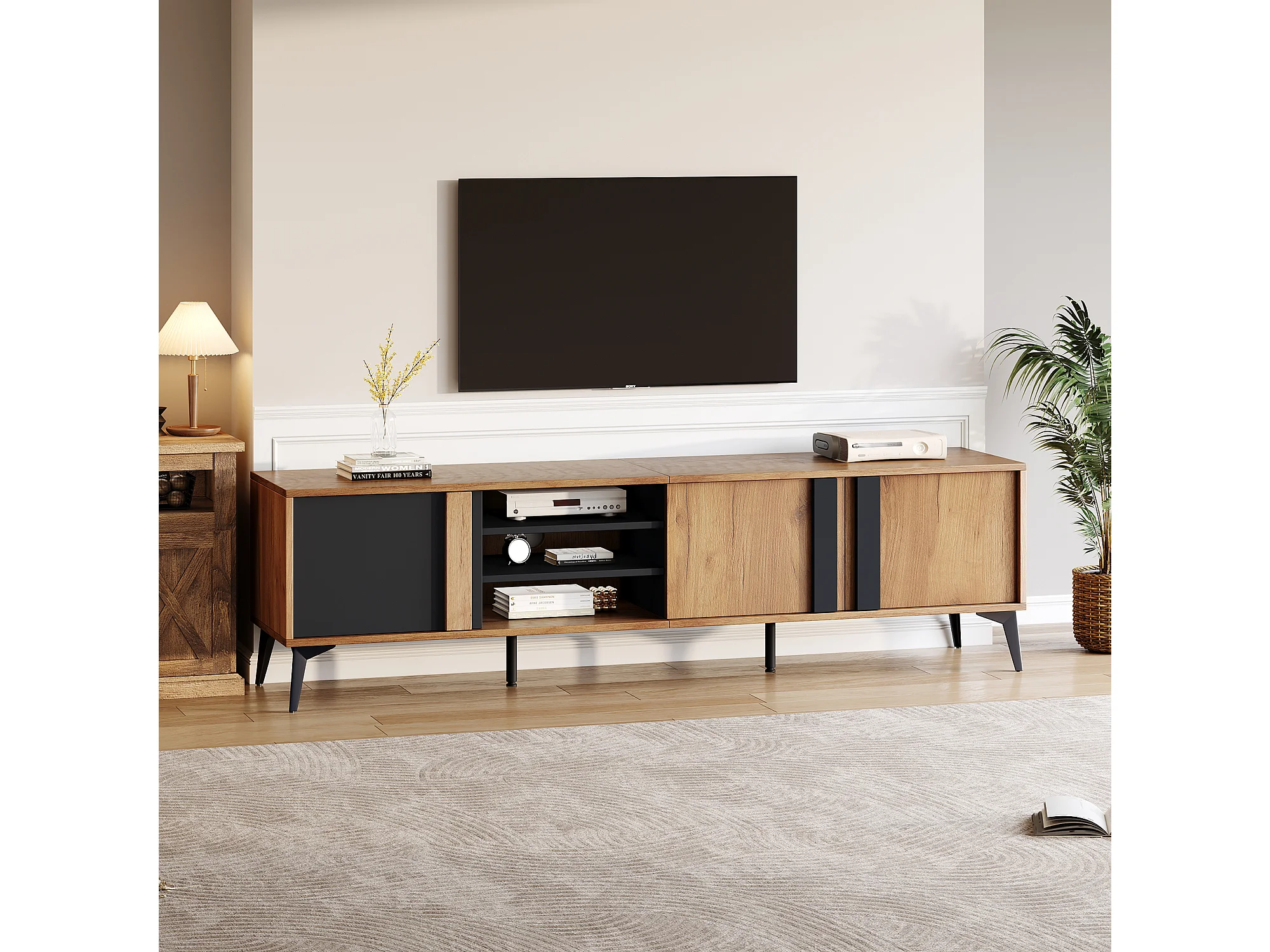 Móvel de TV rústico marrom 180 cm 3 portas 4 prateleiras para TV de 80 polegadas