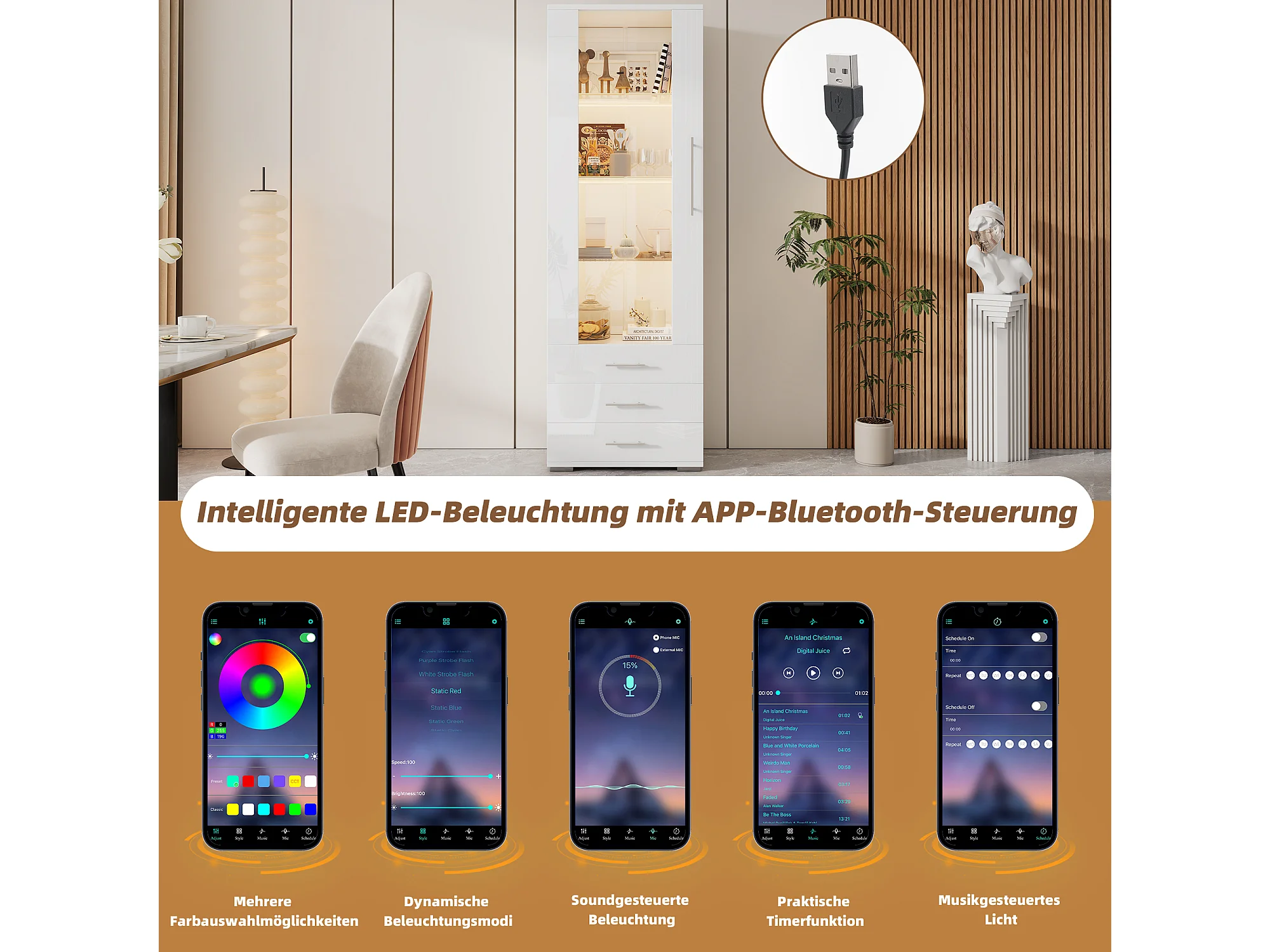 Vitrine de LED alta 16 cores MDF vidro branco armazenamento sala estar quarto 60x35x180 cm