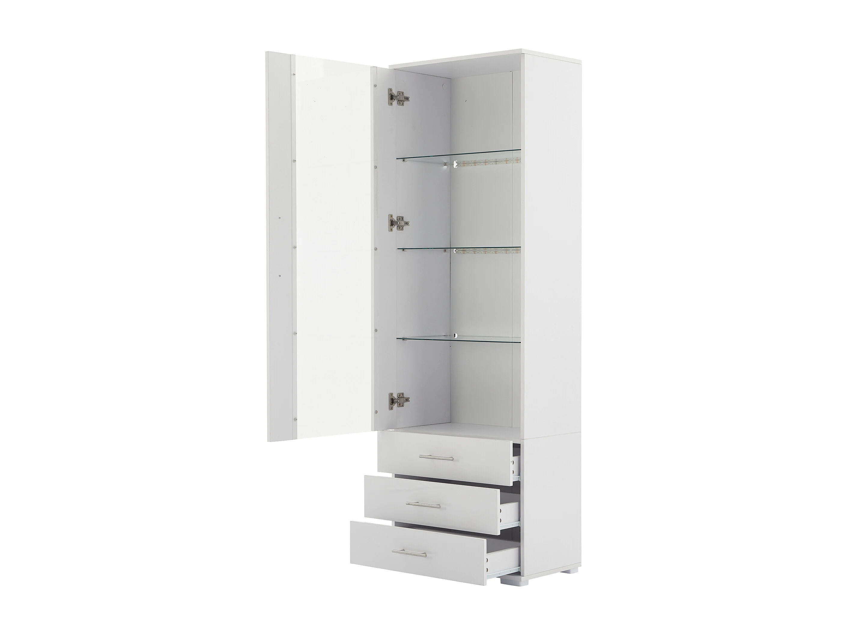 Armário alto de madeira MDF branco com vitrine de vidro, sala de estar, cozinha, escritório, armazenamento 180x80 cm