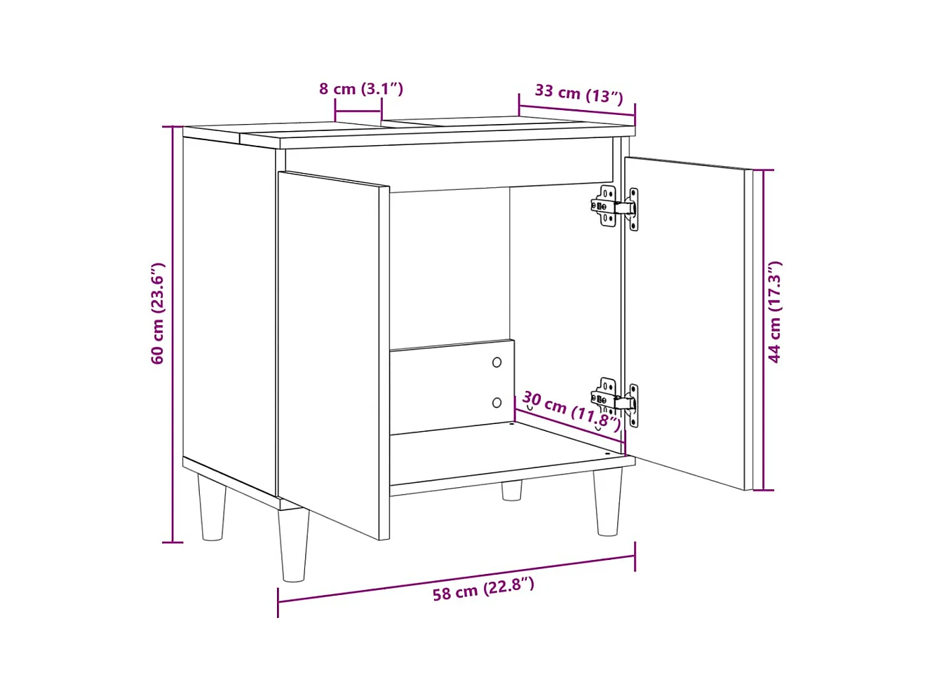Móvel p/ lavatório 58x33x60cm deriv. madeira carvalho castanho