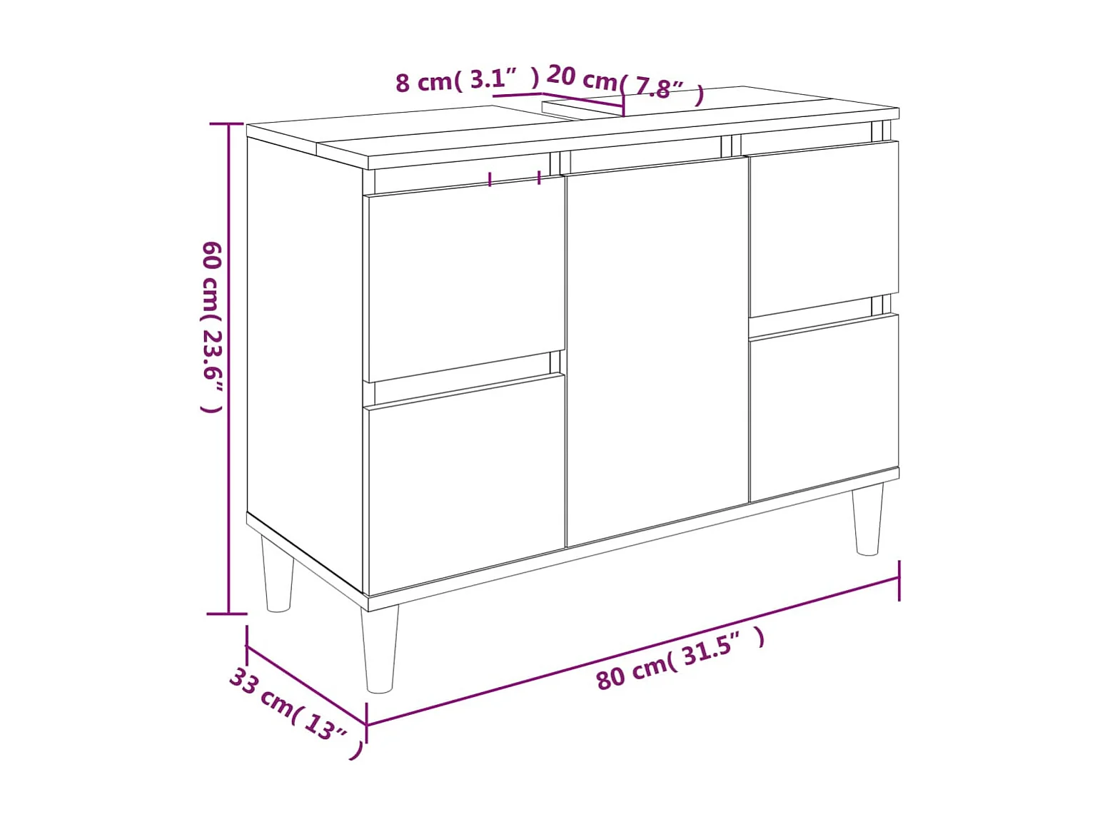 Móvel p/ lavatório 80x33x60 cm deriv. madeira branco brilhante