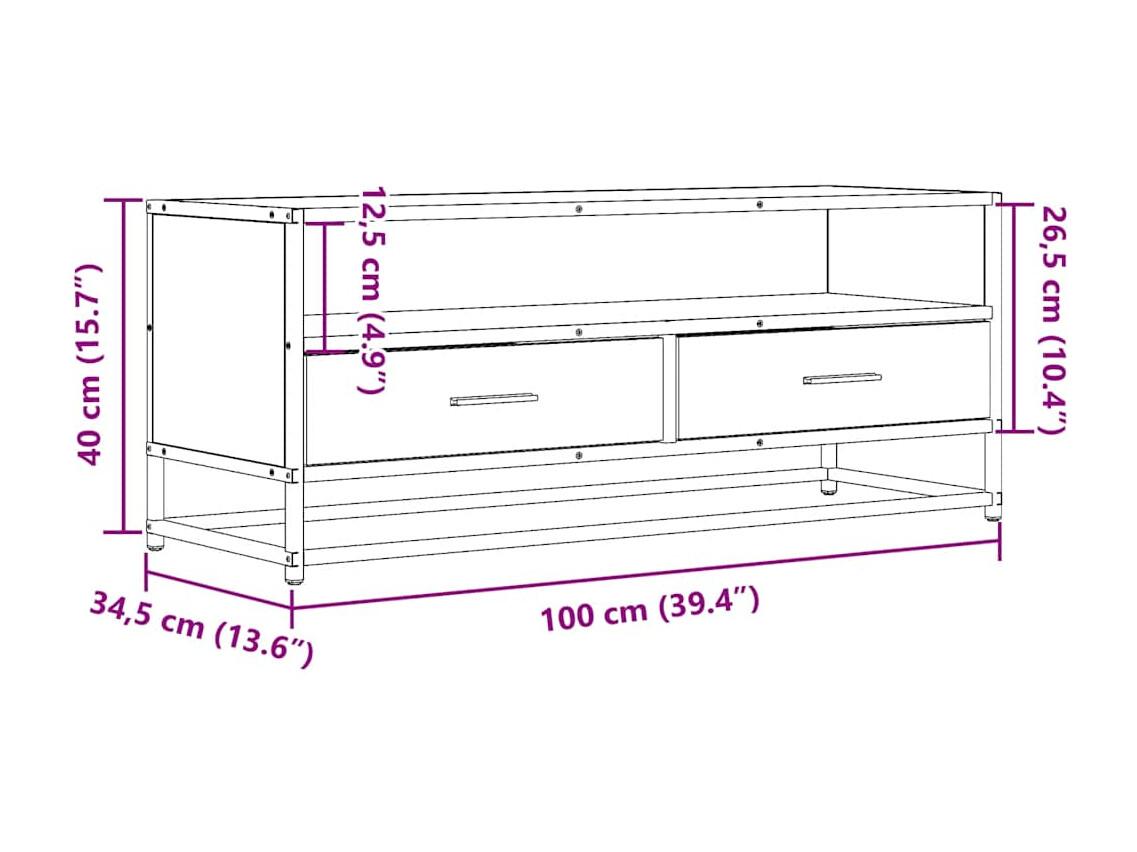 Móvel p/ TV 100x34,5x40 cm deriv. madeira/metal carvalho sonoma