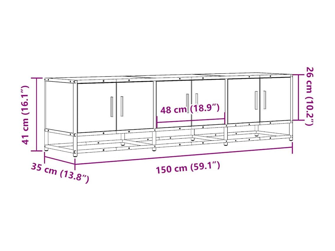 Móvel p/ TV 150x35x41cm derivados madeira/metal carvalho fumado