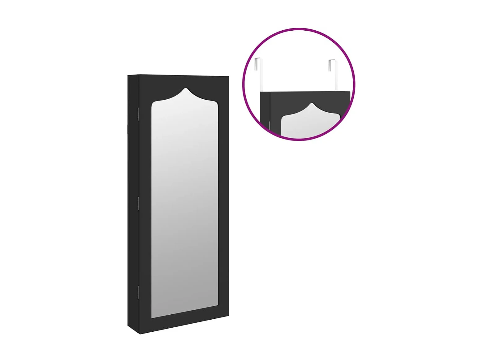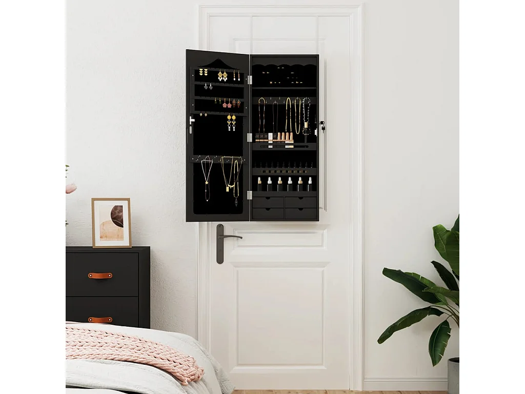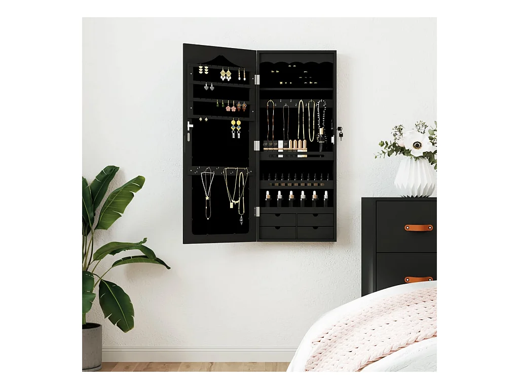 Móvel para joias de parede espelhado 37,5x10x90 cm preto