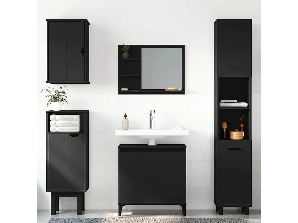 Armário de casa de banho 65x33x60cm derivados de madeira preto